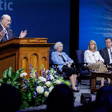 Elder Cook was joined at the devotional by his wife, Sister Mary Cook, as well as Elder Clark G. Gilbert, a General Authority Seventy and the Church commissioner of education, and his wife, Sister Christine Gilbert. The devotional was recorded earlier in the Marriott Center on BYU’s campus in Provo, Utah.