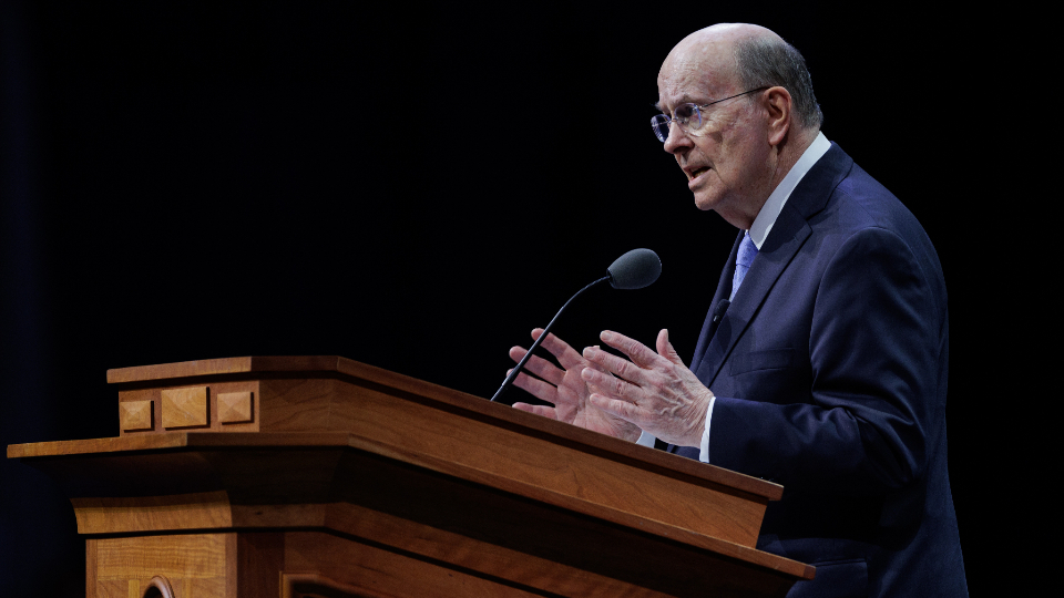 Elder Quentin L. Cook of the Quorum of the Twelve Apostles smiles during the Worldwide Devotional for Young Adults that was broadcasted across various Church channels on Sunday, November 19, 2023.2023 by Intellectual Reserve, Inc. All rights reserved.“Peaceable followers of Christ do not [retreat from truth nor fail to love others],” Elder Cook encouraged last general conference. “We are warm, engaged members of the communities where we live. We [also] love, share and invite all of God’s children to follow Christ’s teachings” (“Be Peaceable Followers of Christ,” October 2023 general conference.