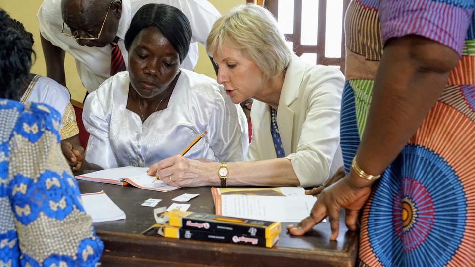 Sister Bingham and her husband, Bruce, traveled to the West African country of Sierra Leone in early June to help implement the Church’s pilot Gospel Literacy program. The Binghams visited the communities of Freetown, Kenema, Bo and several other towns in Sierra Leone, June 5–16.