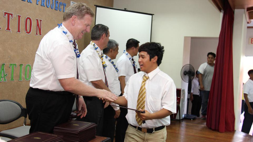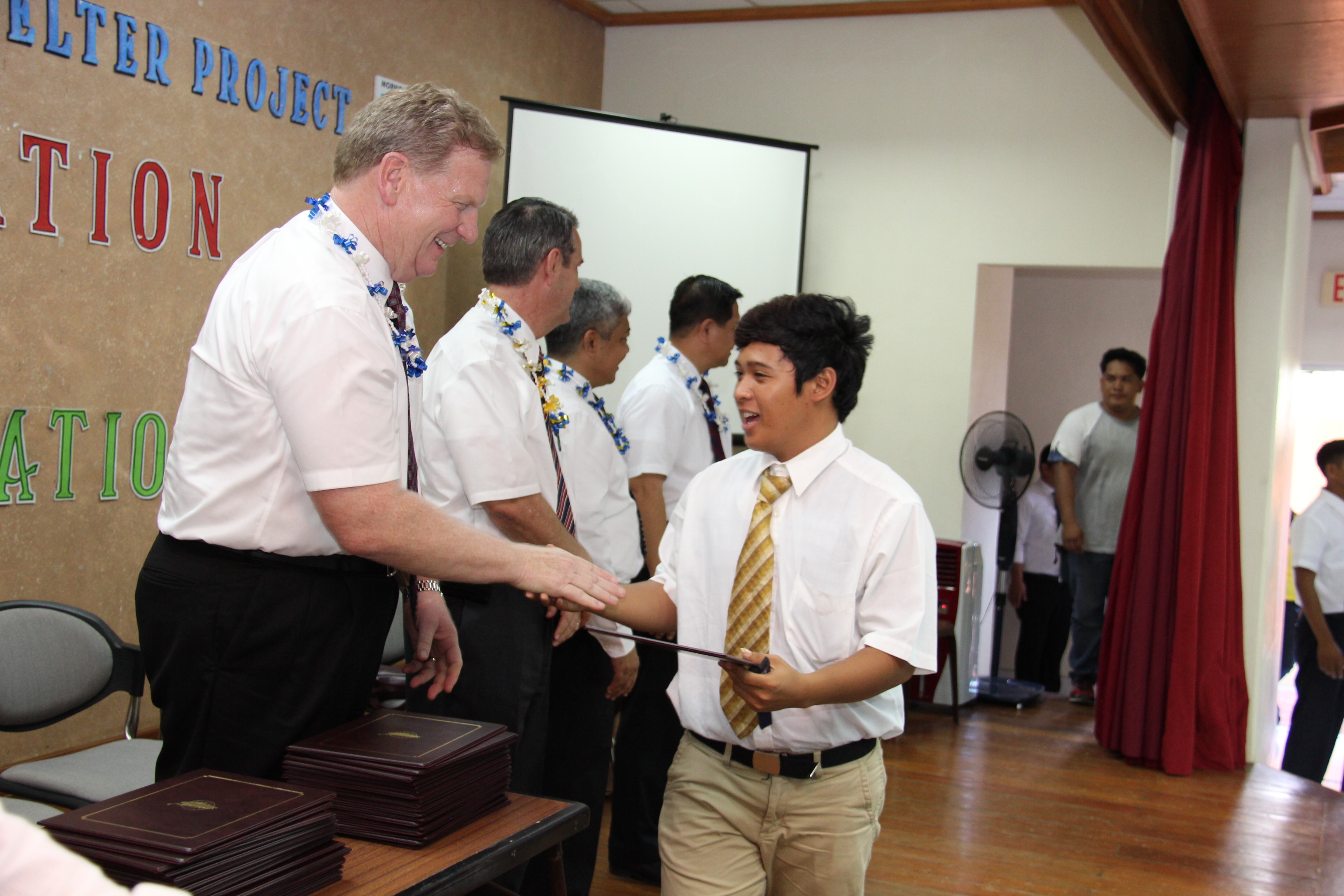 “The Shelter and Carpentry Graduation is a celebration of Filipino resiliency,” said Elder Brent H. Nielson, area president of the Church in the Philippines. “The typhoon may have damaged many things but never the Filipino resolve to rise above the challenges around him. Many things have been accomplished after Yolanda. We will continue to serve our brothers and sisters as we follow the teaching of our Savior, Jesus Christ, to help others.”
