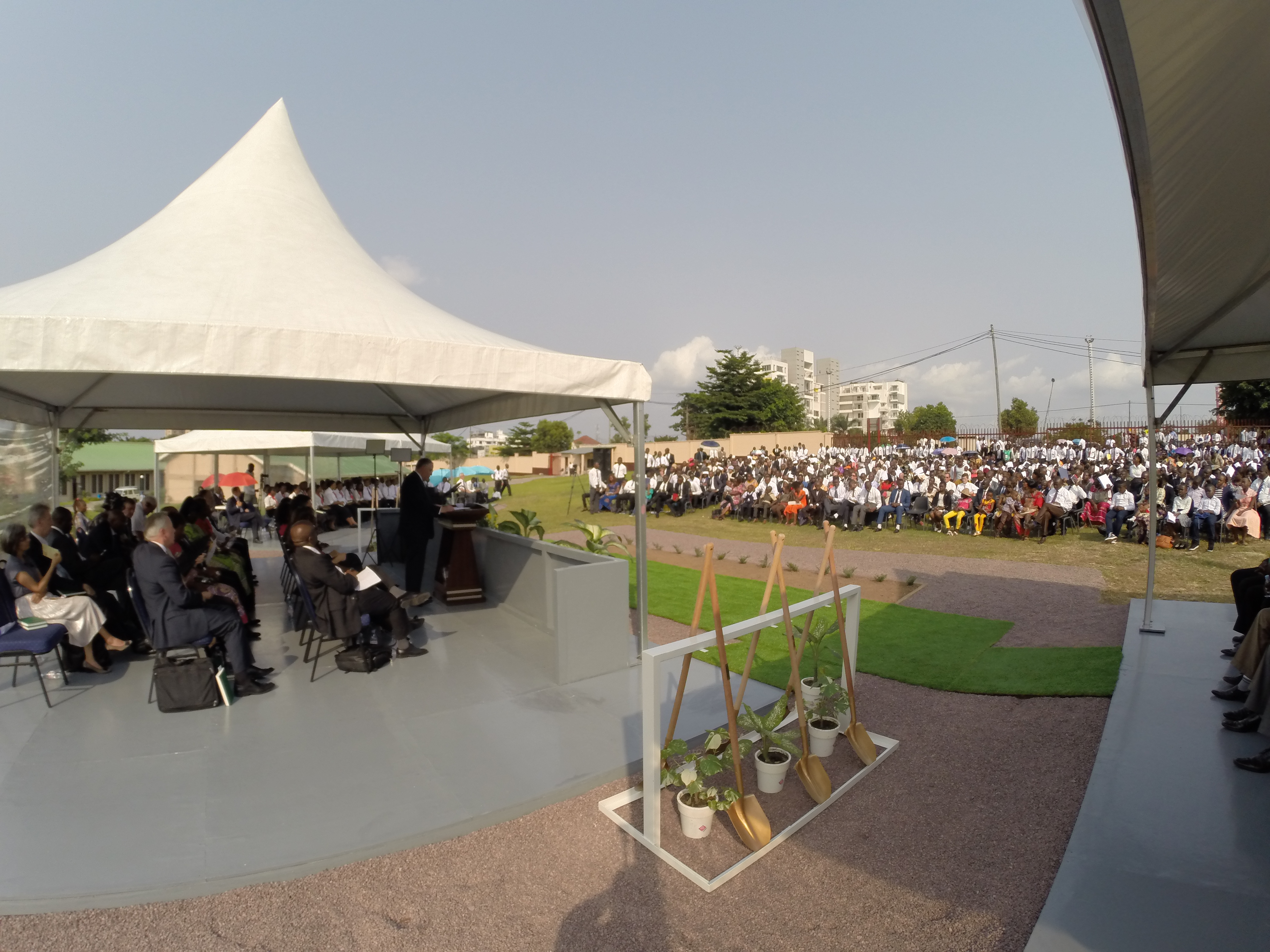 Attending the groundbreaking were a number of government and religious leaders and 800 Latter-day Saints. Members of the Area Presidency, Elders Carl B. Cook and Kevin S. Hamilton, and their wives attended as well as Elders Jean Claude Mabaya, Wembo Lono and Alfred Kyungu of the Seventy. There are more than 40,000 members and 145 congregations in the Democratic Republic of the Congo.