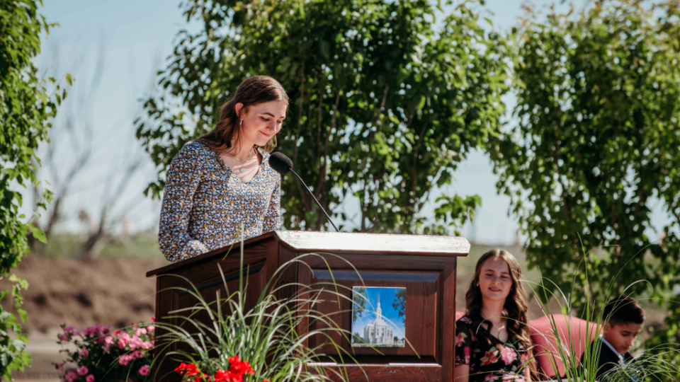 Natalie Pavkov, a youth speaker from the Kirtland Ohio Stake, shared her insights about temple service. “Temples are sacred houses of the Lord where magnificent work is done,” she said. “Temples are especially important for sealing families together and many other covenants and ordinances.”