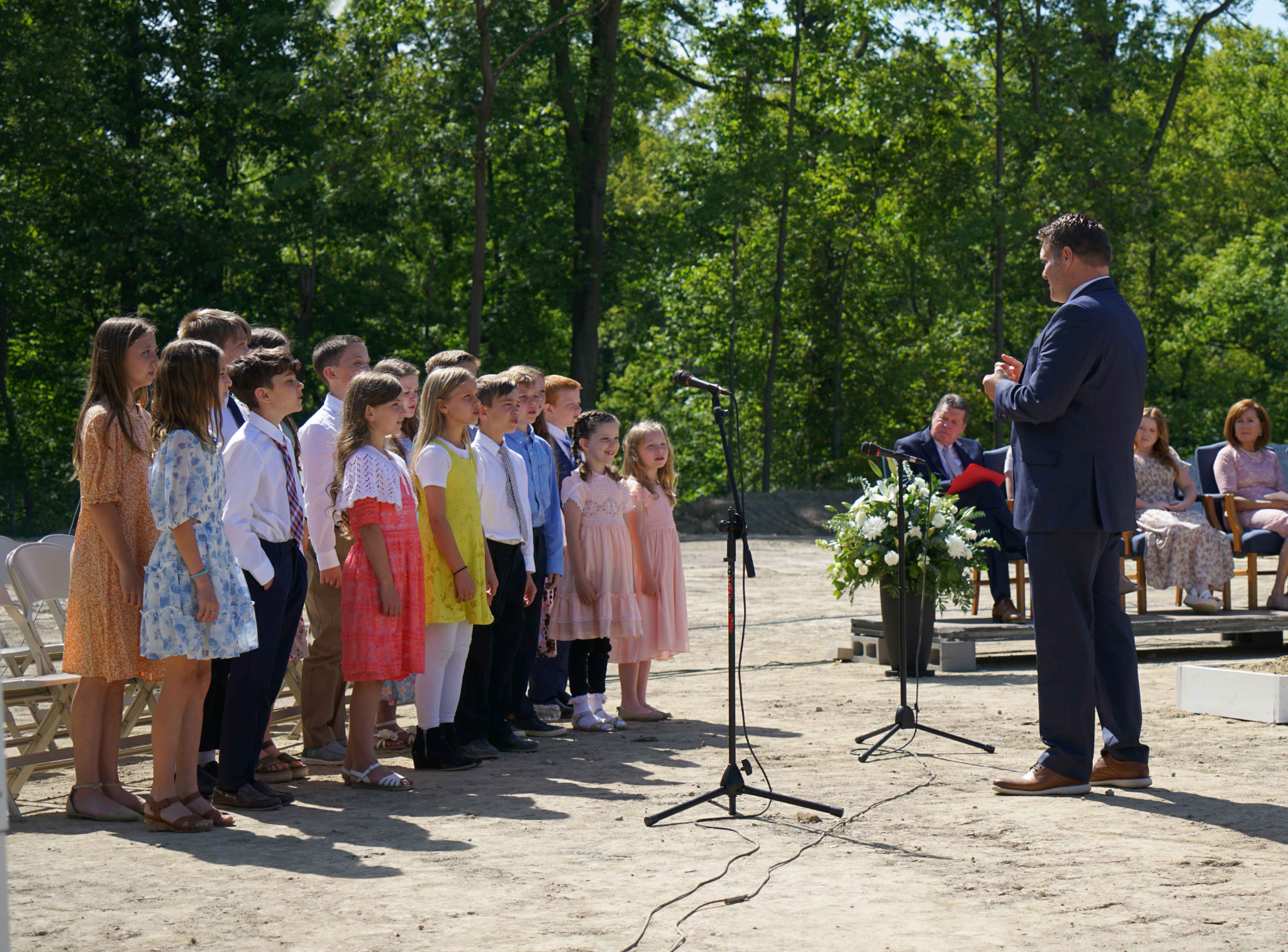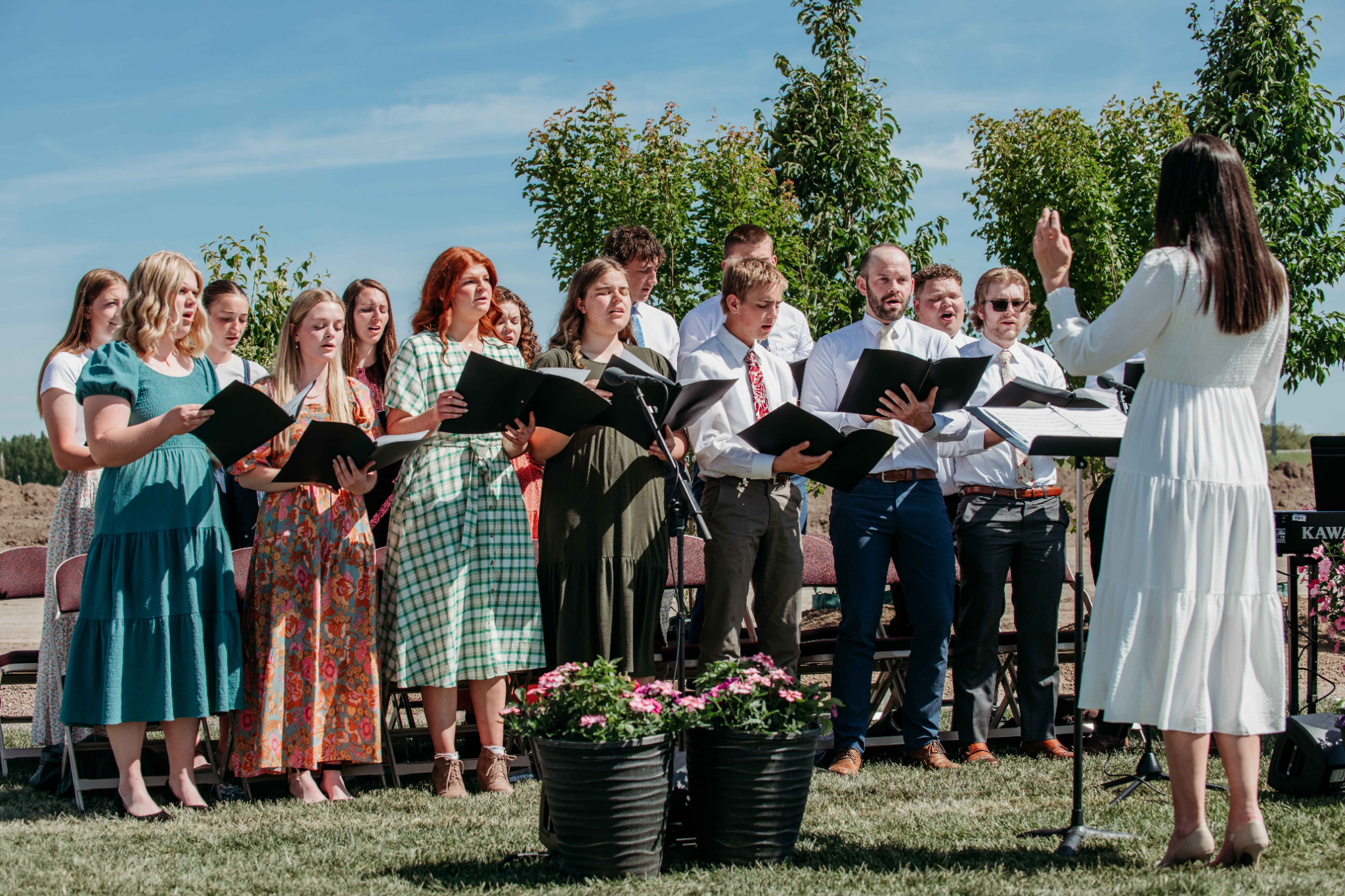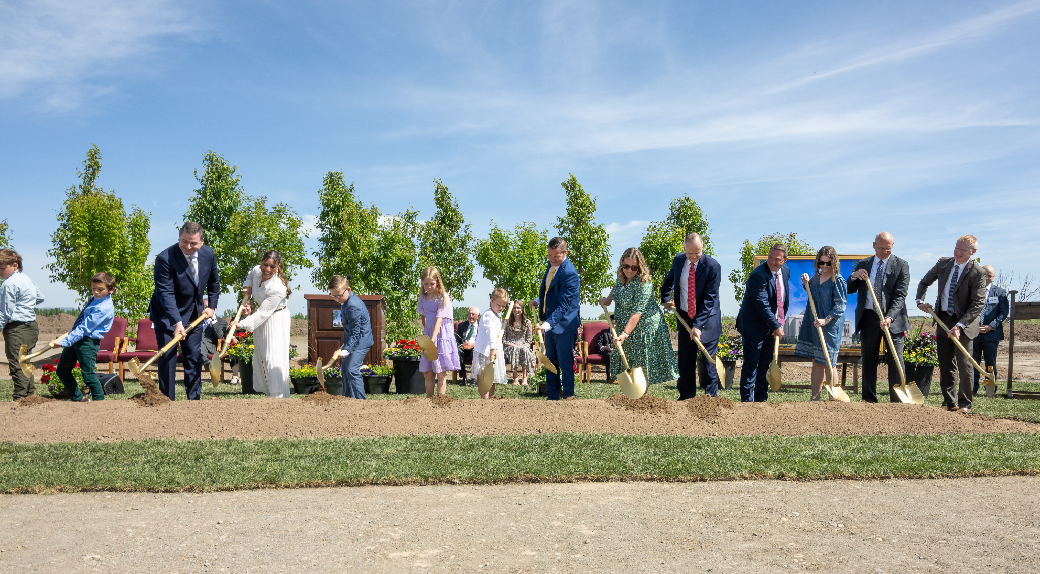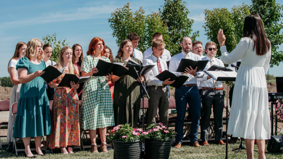 The Youth and Young Single Adult Choir from Driggs, Idaho, sang “Now Let Us Rejoice” before the symbolic turning of the shovels commemorating the beginning of construction.