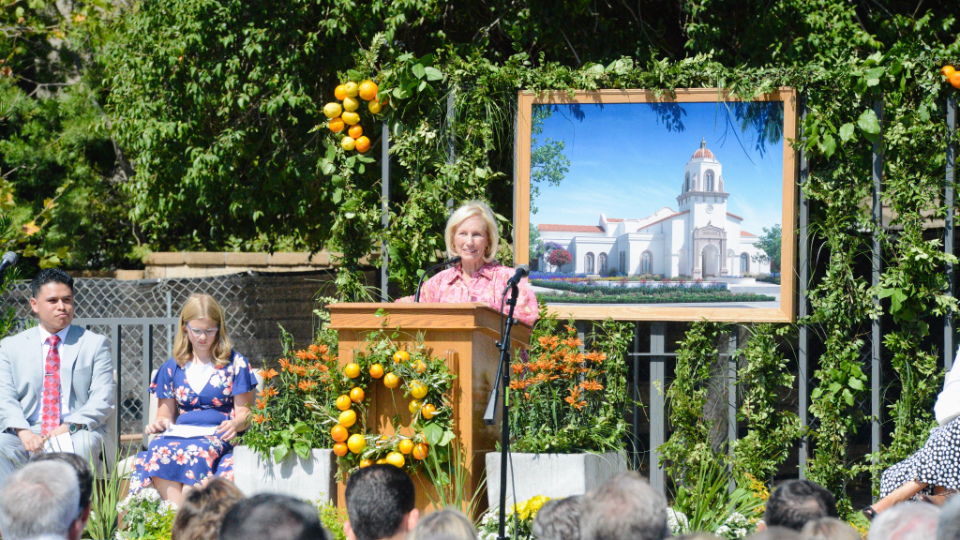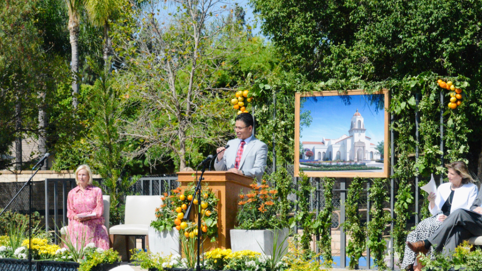 Elder Bragg also spoke of the blessings a temple will bring to the area. Invoking the motto for the City of Yorba Linda (“Land of gracious living”), he promised “that this house of the Lord will represent the highest in gracious living and those who enter will leave with a higher commitment to gracious living. … We commit to being neighbors of gracious living.”