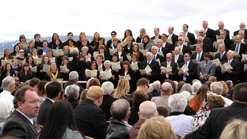 Leaders of The Church of Jesus Christ of Latter-day Saints joined with community leaders in Star Valley, Wyoming, on Saturday, April 25, 2015, to break ground for the first temple in Wyoming.