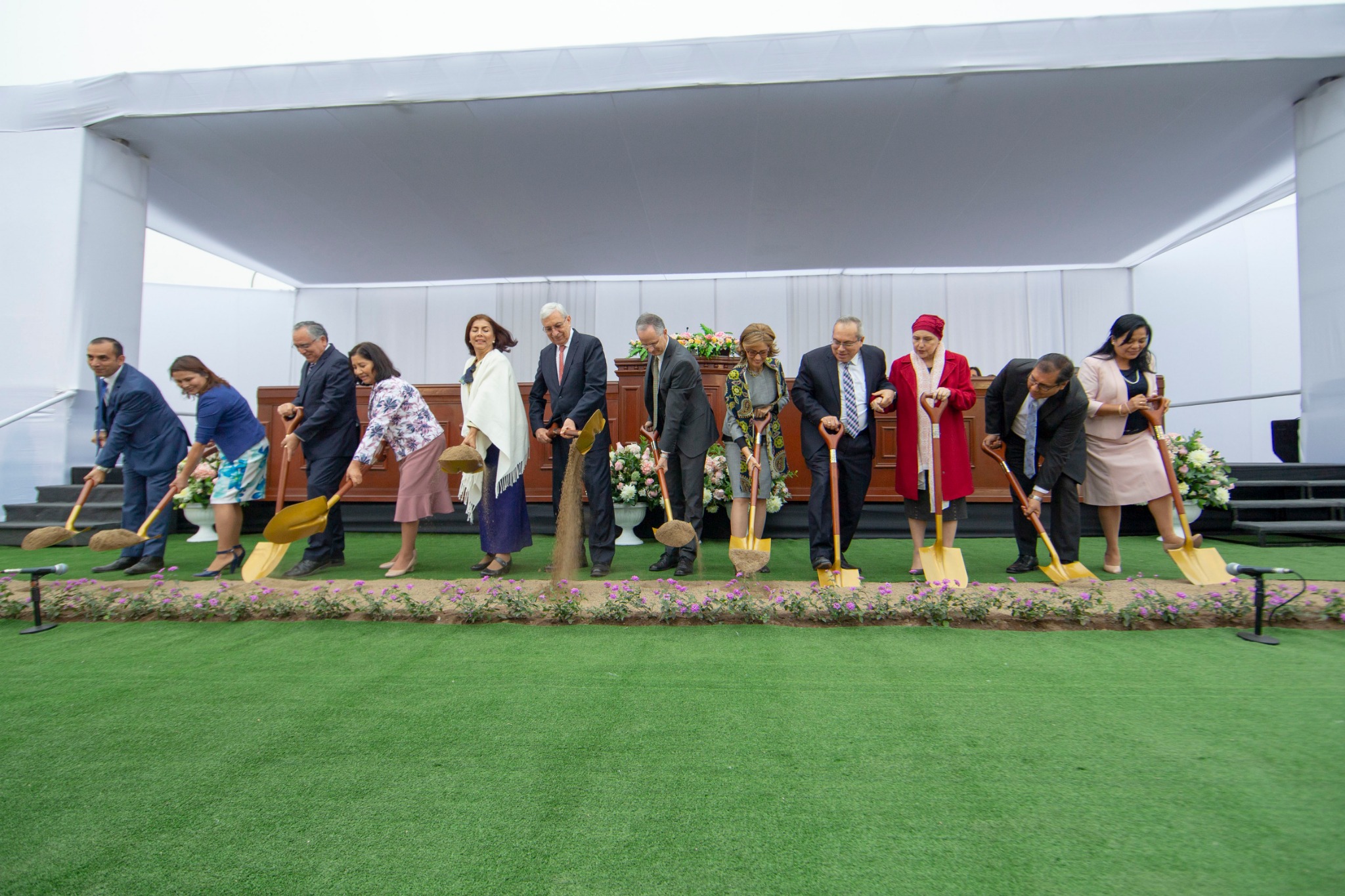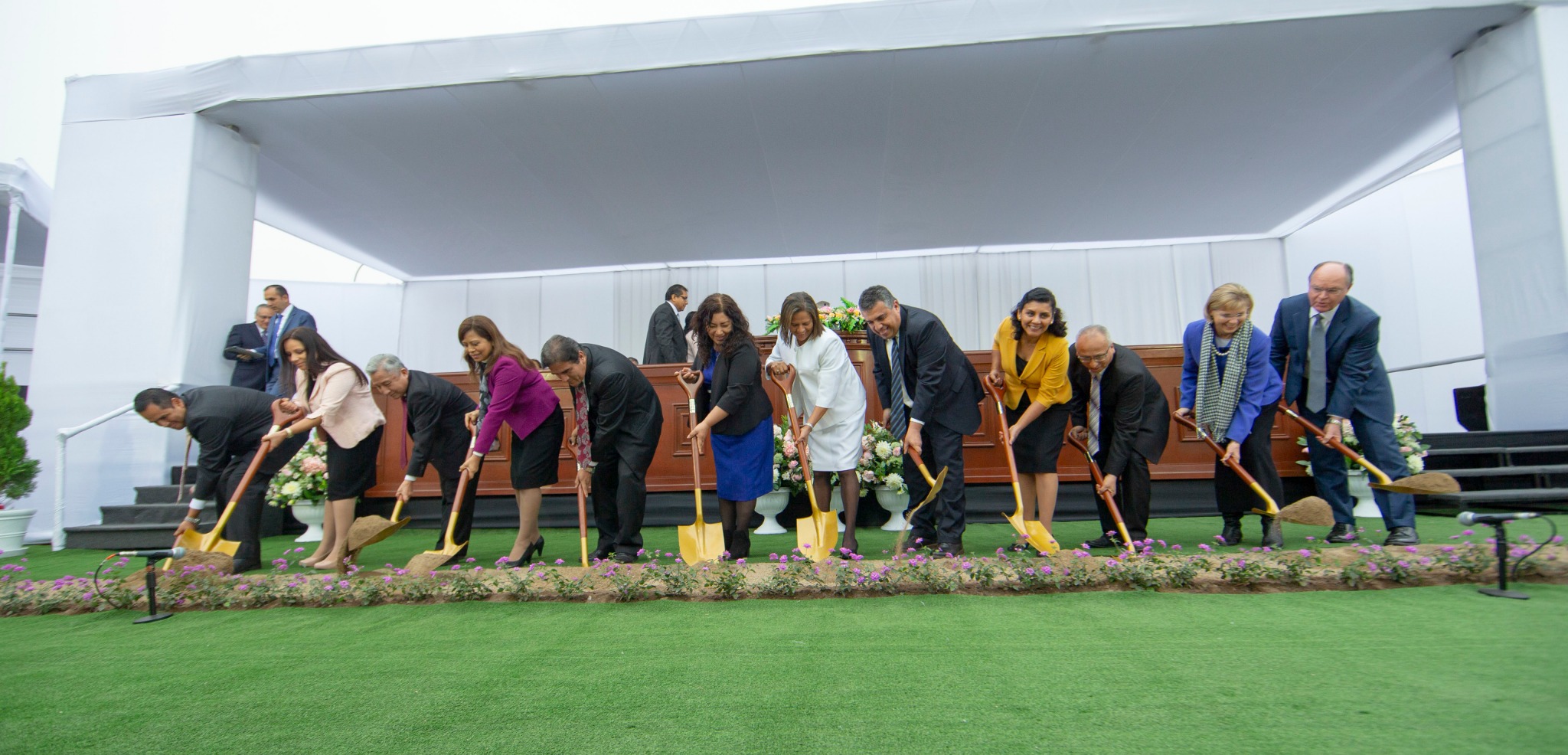 Construction of the Lima Peru Los Olivos Temple of The Church of Jesus Christ of Latter-day Saints has begun. Ground was broken for the temple under the direction of Elder Enrique R. Falabella of the Seventy and president of the South America Northwest Area.