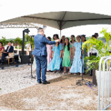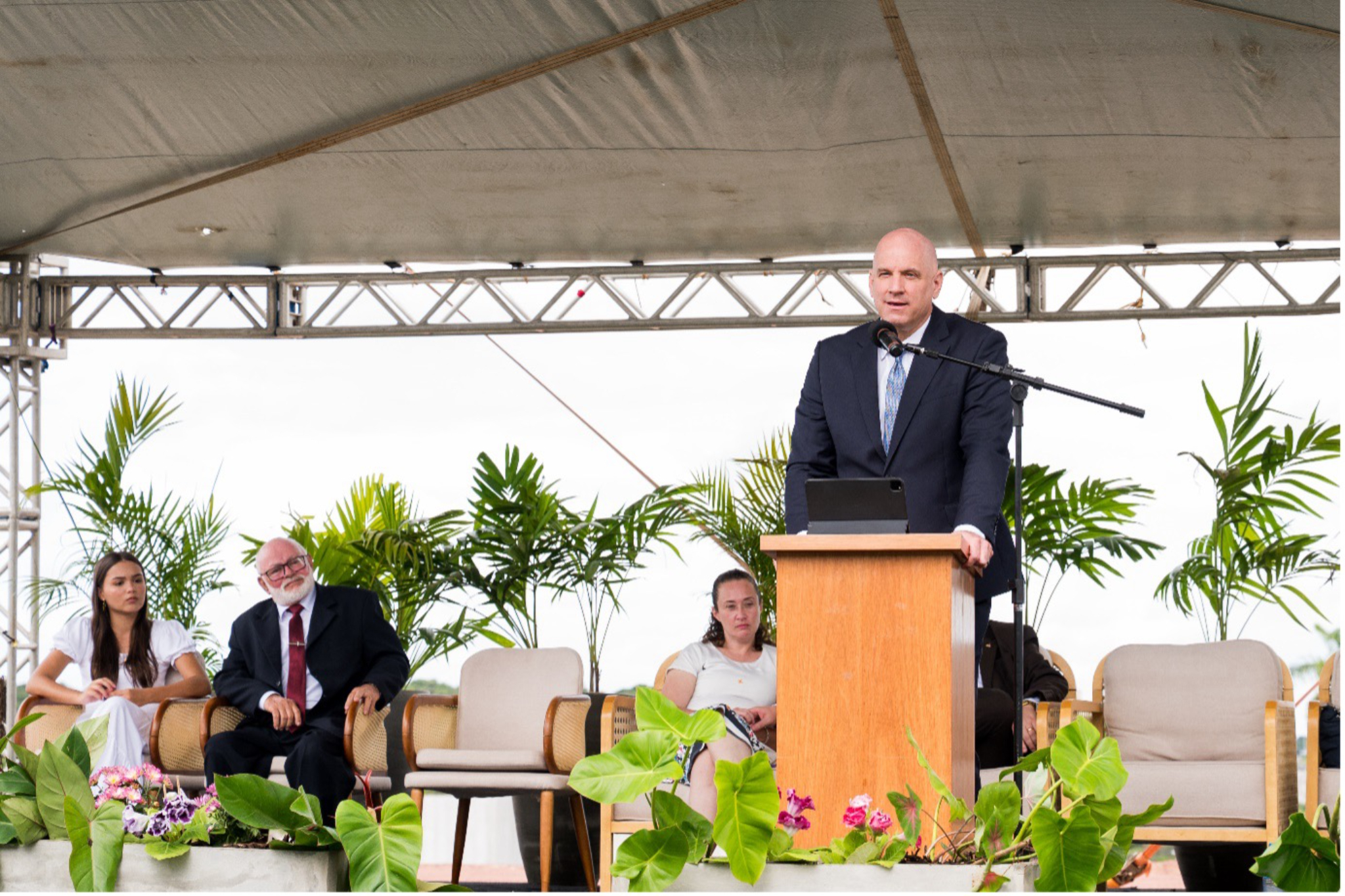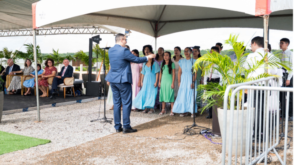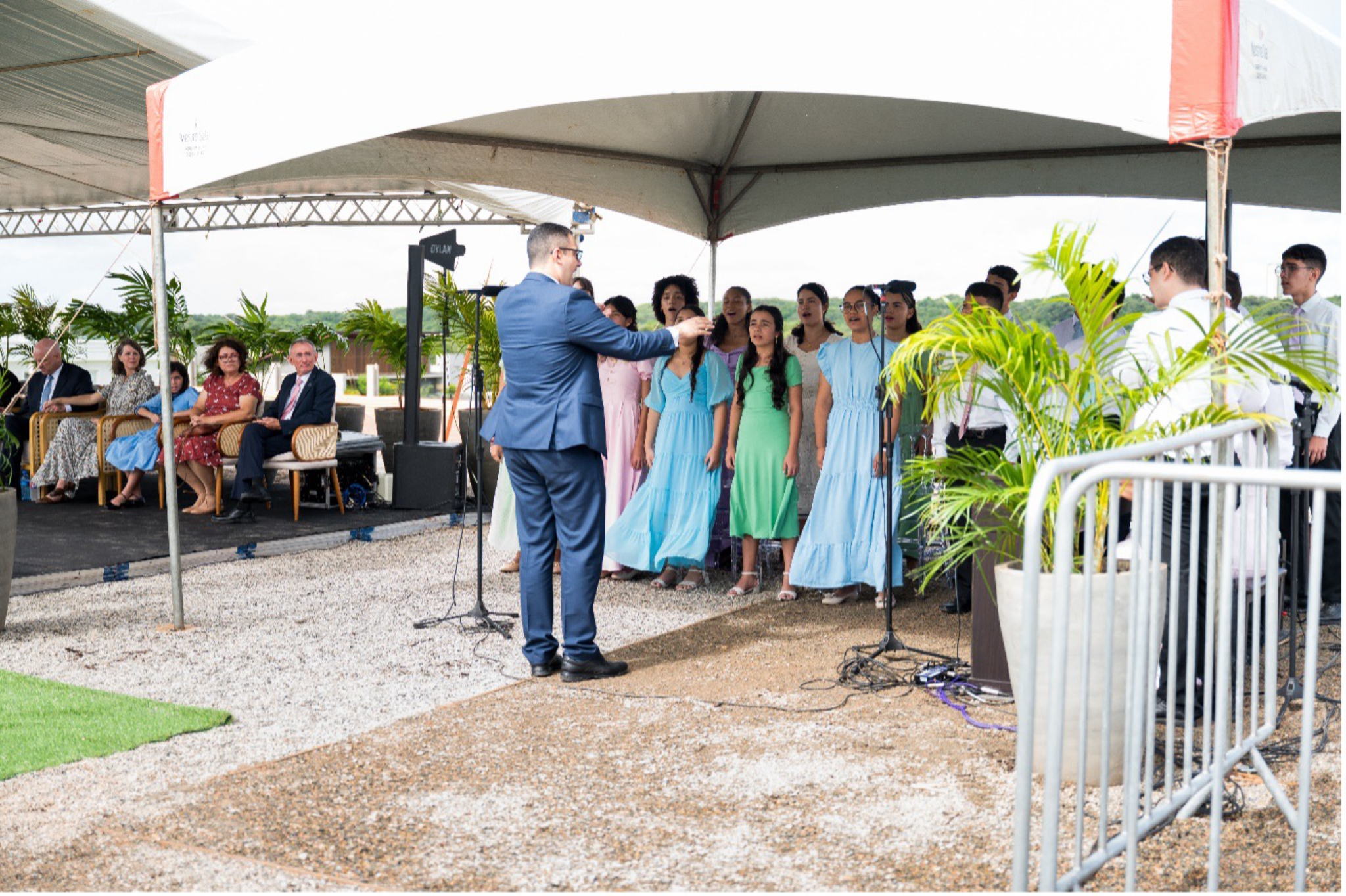 Presided over by Elder Eddy and conducted by Elder Sankari, an Area Seventy, the ceremony featured remarks from 10-year-old Larissa Silva de Oliveira, 17-year-old Maria Eduarda Gomes da Silva, and Antonio Carlos Bastos Ferreira, a pioneer of the Church in the region. He recalled: