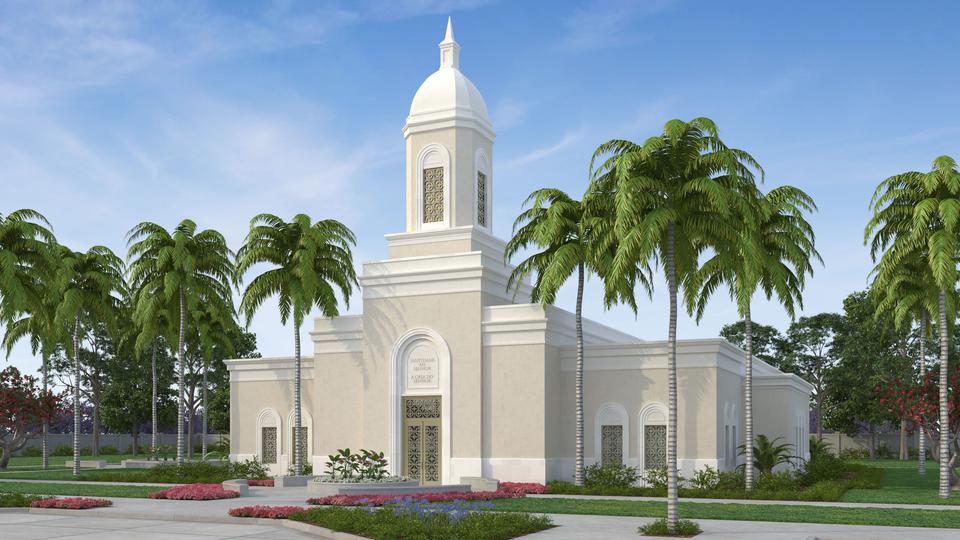 An artist rendering of the temple was also made public Friday. The rendering features a single-story temple with an end spire reflective of the architectural styles in the area. The temple will be built in the capital city of Praia on the island of Santiago and located east of Avenida Cidade de Lisboa in the Tahiti Chã de Areia neighborhood.