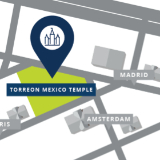 A map showing the location of the Torreón Mexico Temple.2021 by Intellectual Reserve, Inc. All rights reserved.The Torreón Mexico Temple will be built on a 0.89-acre site located on the corner of Paris and Amsterdam Streets in the City of Gomez Palacio, Mexico. Plans call for a single-story temple of approximately 10,000 square feet.
