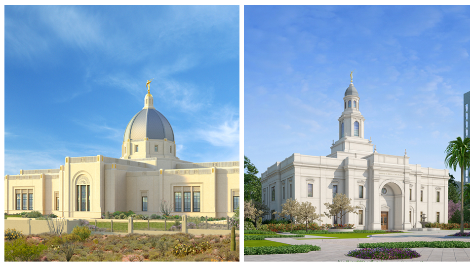 - Rendering of the Tucson Arizona Temple and the Concepción Chile Temple.
