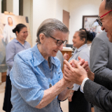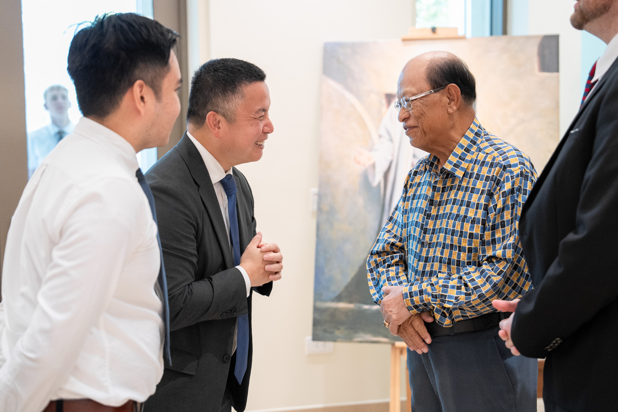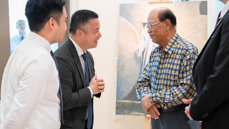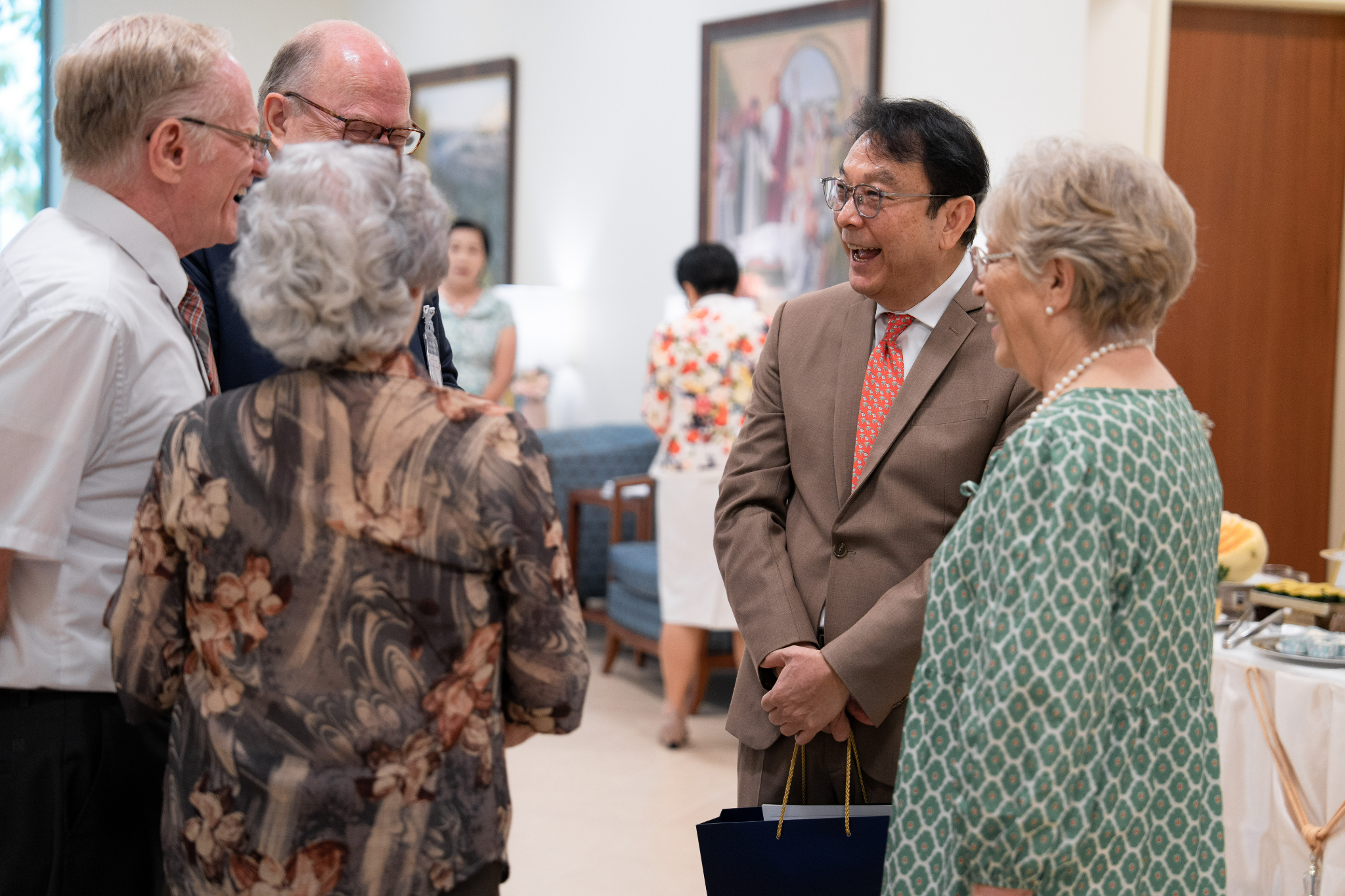 One of the guests, Louise Horgan of the nonprofit The Good Shepherd Sisters of Thailand, has enjoyed a special relationship with the Church of Jesus Christ since at least 2018. Horgan, who is nearly 90, has spent her life providing shelter and educational training for at-risk women. Just last year, Elder Dieter F. Uchtdorf of the Quorum of the Twelve Apostles presented Horgan with a donation that helped her organization build a teaching kitchen to provide vocational training for the women in her care.