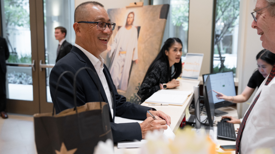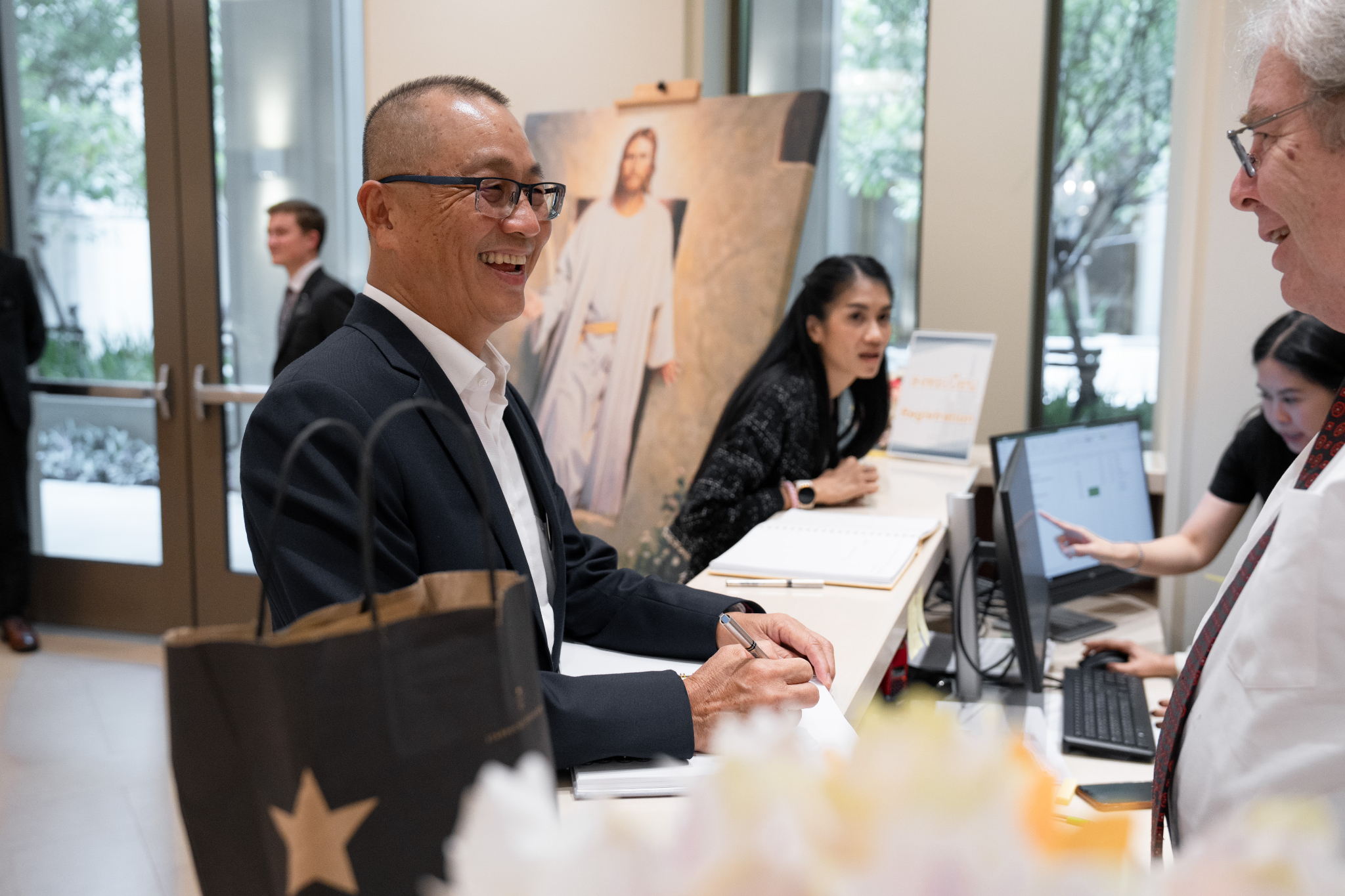 Over the past three days, more than 900 distinguished guests from Thailand and elsewhere have toured the new Bangkok Thailand Temple of The Church of Jesus Christ of Latter-day Saints. Elder Gerrit W. Gong of the Quorum of the Twelve Apostles, along with his wife, Susan, have helped lead these groups through the house of the Lord.