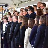 He invited children to help him seal the cornerstone with mortar using a monogrammed trowel. He thanked them for coming out on a chilly November morning to be part of the ceremony, "You're so nice to be here in the cold," said President Eyring. "Bless your hearts."