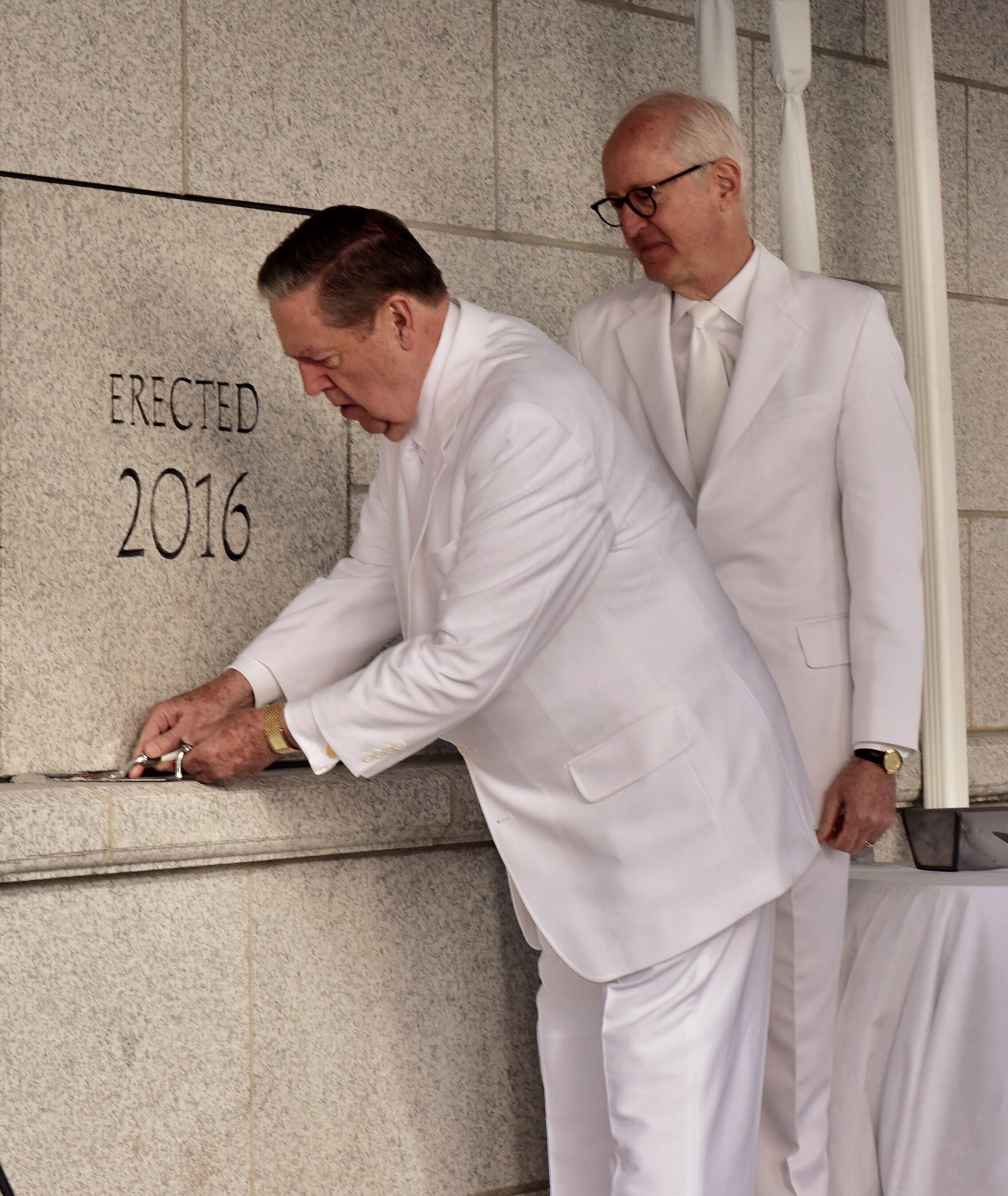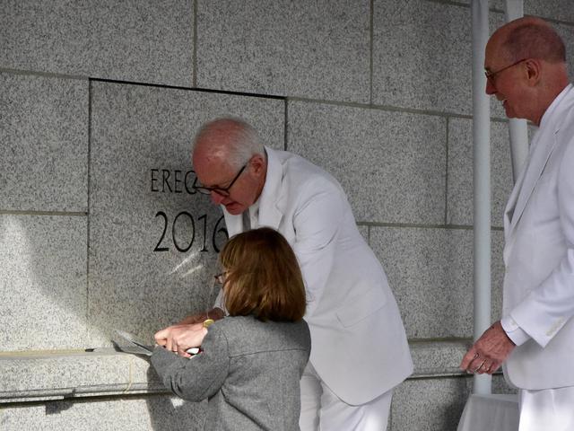 Prior to the dedication, President Eyring conducted the traditional cornerstone ceremony, which signifies completion of the temple.