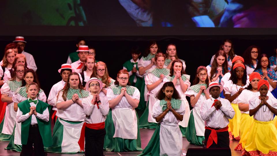Thousands of Mormon youth danced and sang, depicting the history of the area and of the Church to the audience at the Oakdale Theatre in nearby Wallingford, Connecticut.