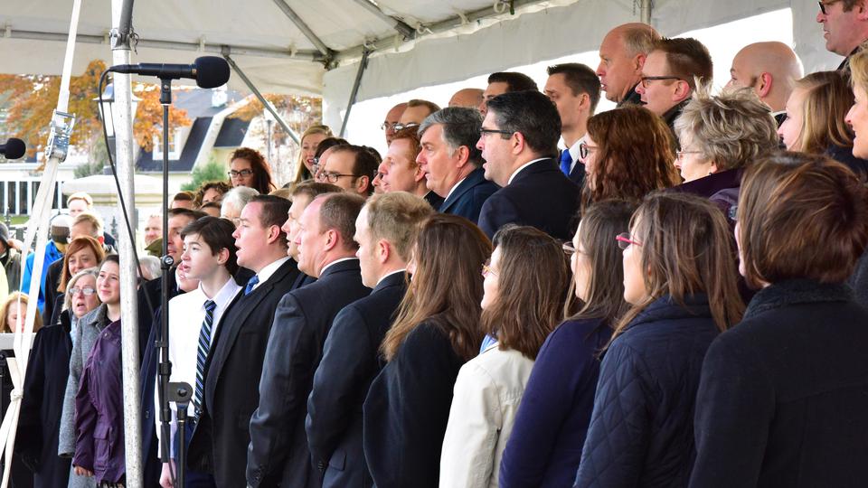 Choirs comprised of Latter-day Saints from throughout the temple district provided music for the cornerstone ceremony and the three dedicatory sessions. Latter-day Saints were able to participate in the dedication in the temple as well as from their local meetinghouses.