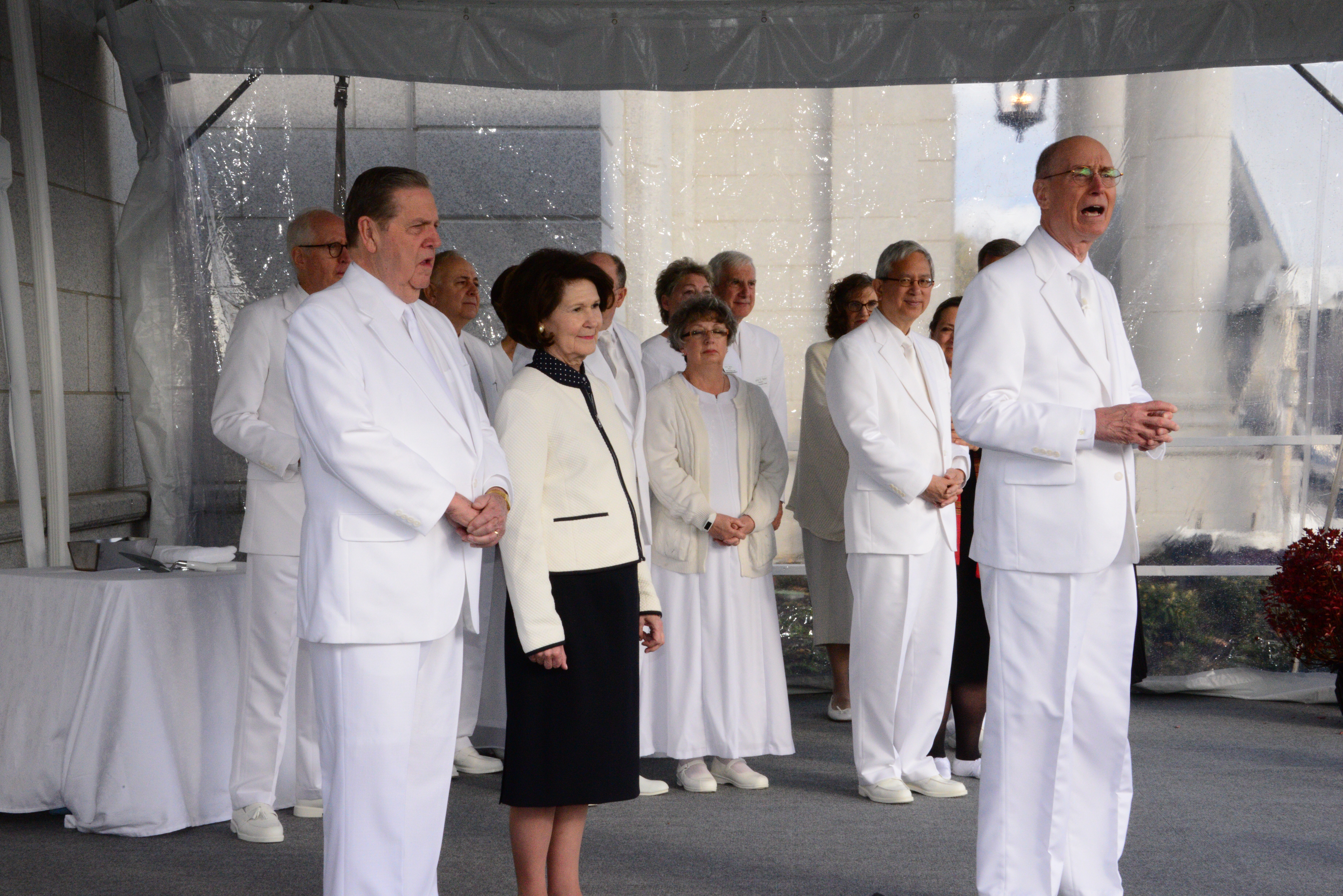 Taking part in the dedication with President Eyring were Elder Jeffrey R. Holland of the Quorum of the Twelve Apostles, Elder Gerrit W. Gong of the Presidency of the Seventy and Elders Randall K. Bennett and Larry Y. Wilson of the Seventy.