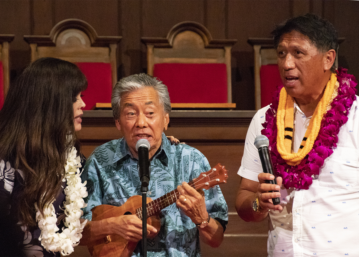 The interfaith devotional was blessed with many local musical talents as well, including the St. John Apostle and Evangelical Catholic Church choir from Mililani, Oahu; Gabby Pahinui, the grandson and namesake of a well-known Hawaiian slack key player and singer Gabby “Pops” Pahinui, from New Hope Windward Church in Kaneohe; the Samoan Seventh-day Adventist men’s choir from various congregations across the island; Musical Truth, a Laie choir led by Jolene Kanahele with members from throughout Oahu; and well-known ukulele master and teacher Roy Sakuma.