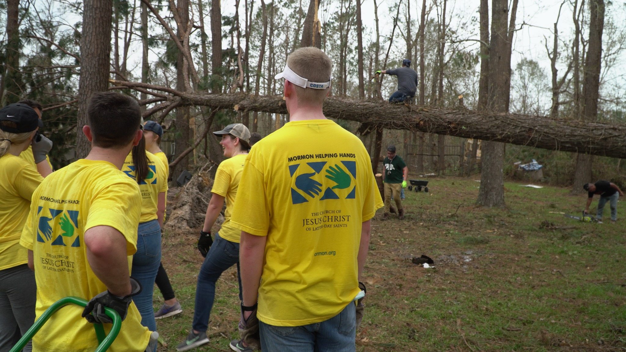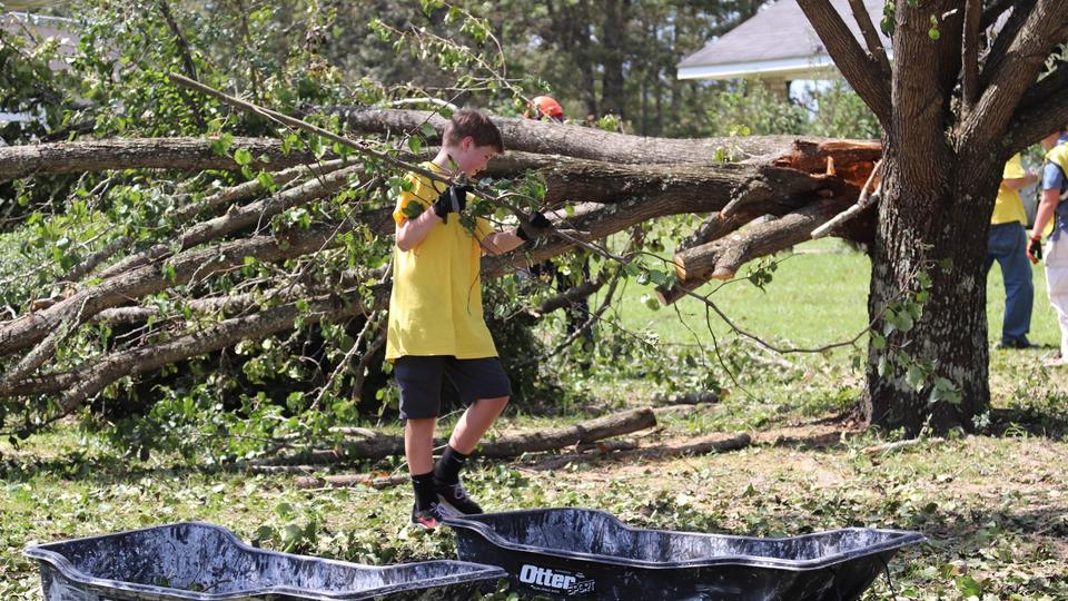 Chainsaws, hand trucks, debris sleds, tarps, food boxes, water and other tools needed to aid victims of the storm have been shipped to the sites by the Church’s global humanitarian organization, Latter-day Saint Charities.