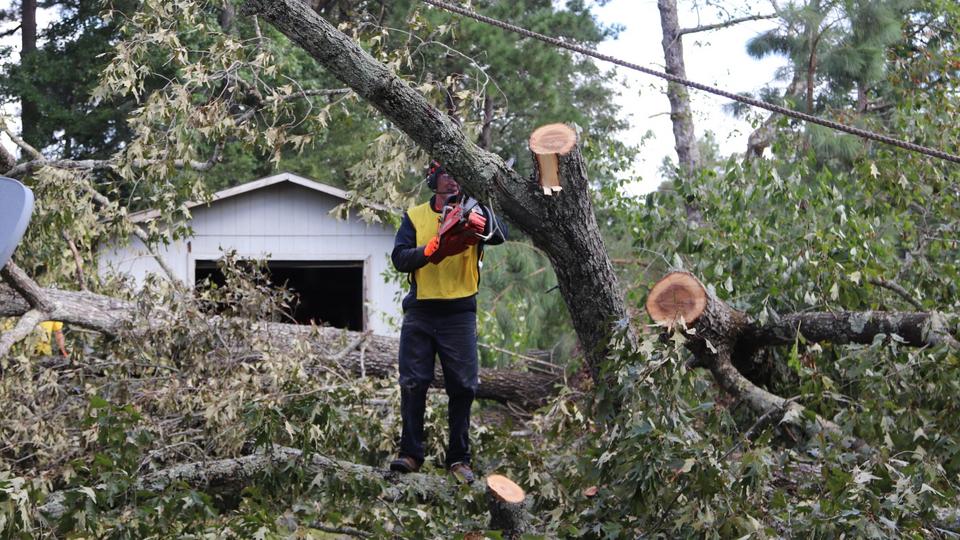 “When I pulled into the driveway, I started crying. There were trees everywhere,” said Kelli Cowan, a Church member whose home and property were damaged in the storm. She took refuge in Shreveport, Louisiana, until the storm had passed.
