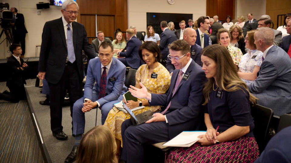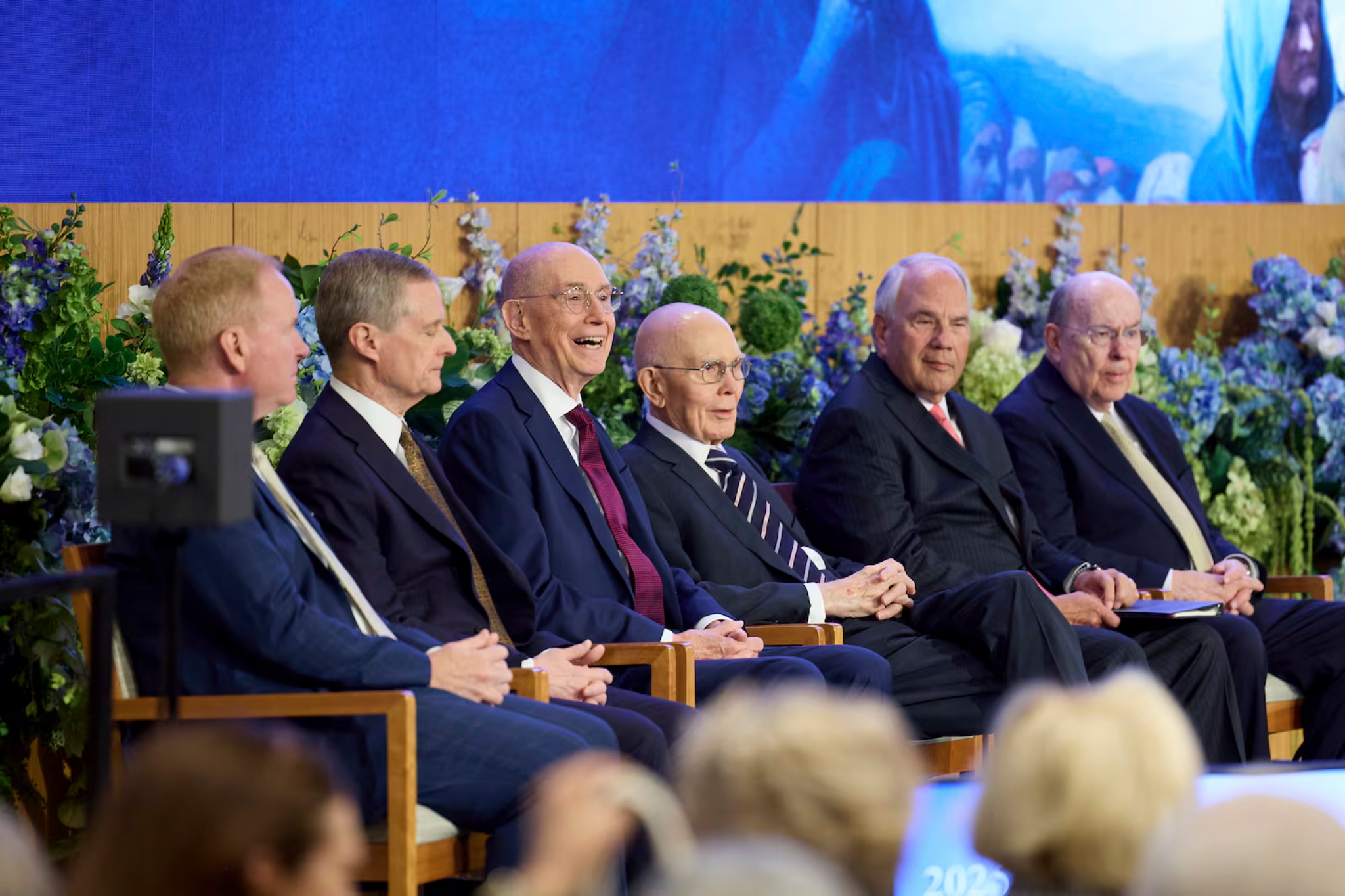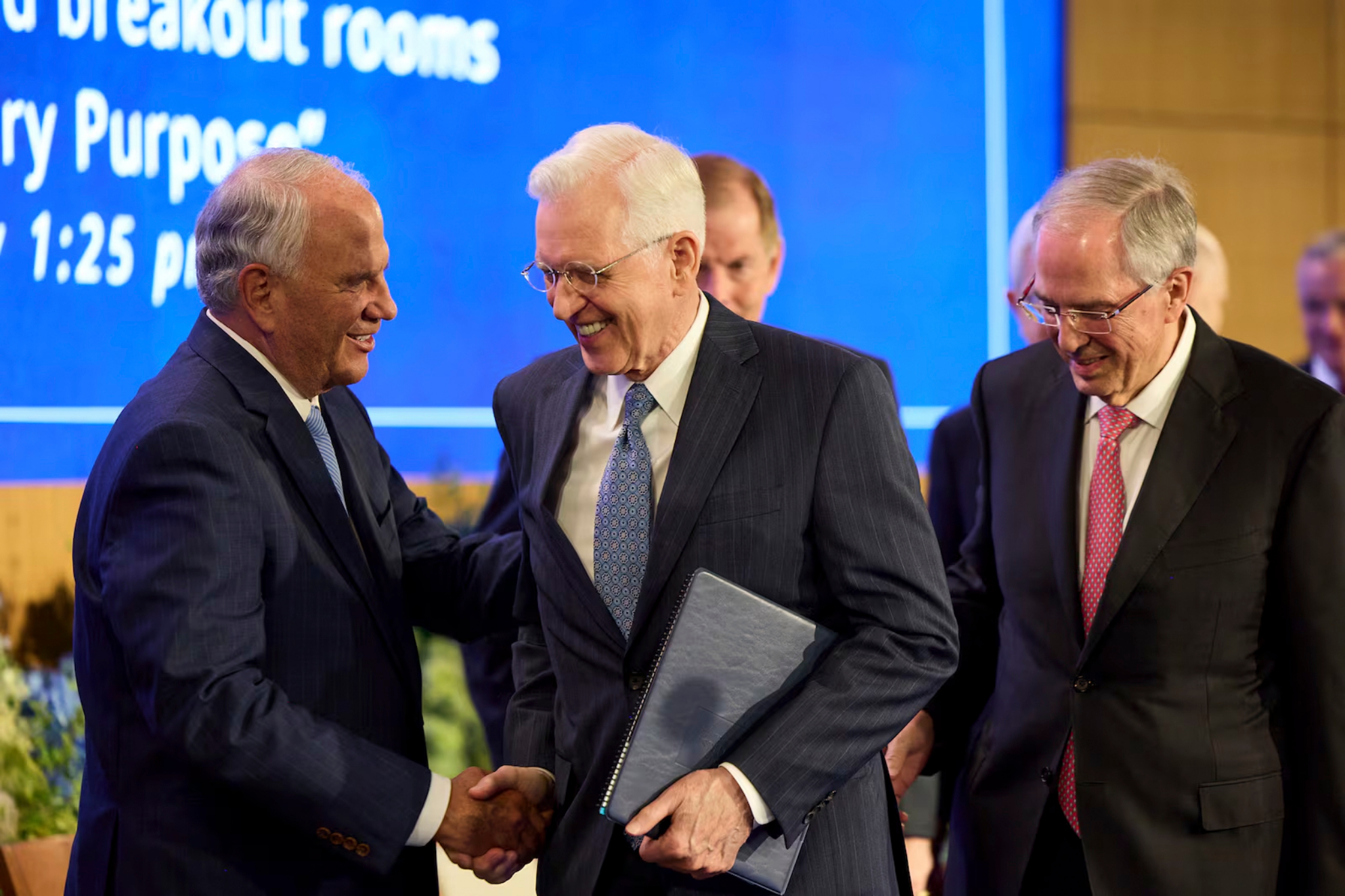 President Jeffrey R. Holland, Acting President of the Quorum of the Twelve Apostles, speaks with Elder Quentin L. Cook of the Quorum of the Twelve Apostles and President Dallin H. Oaks, First Counselor in the First Presidency, at the 2025 Seminar for New Mission Leaders in Provo, Utah, on Thursday, June 19, 2025.2025 by Intellectual Reserve, Inc. All rights reserved.