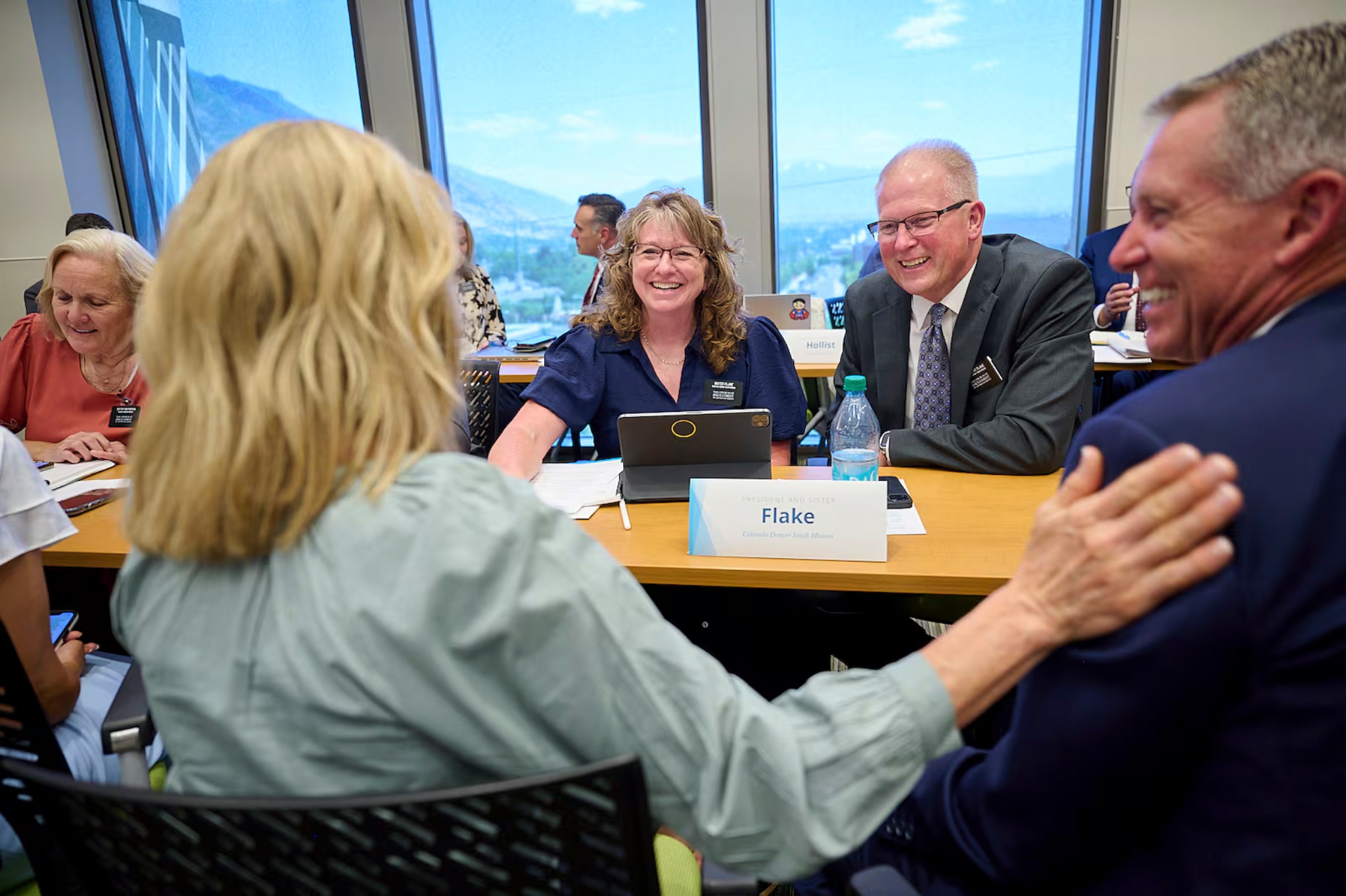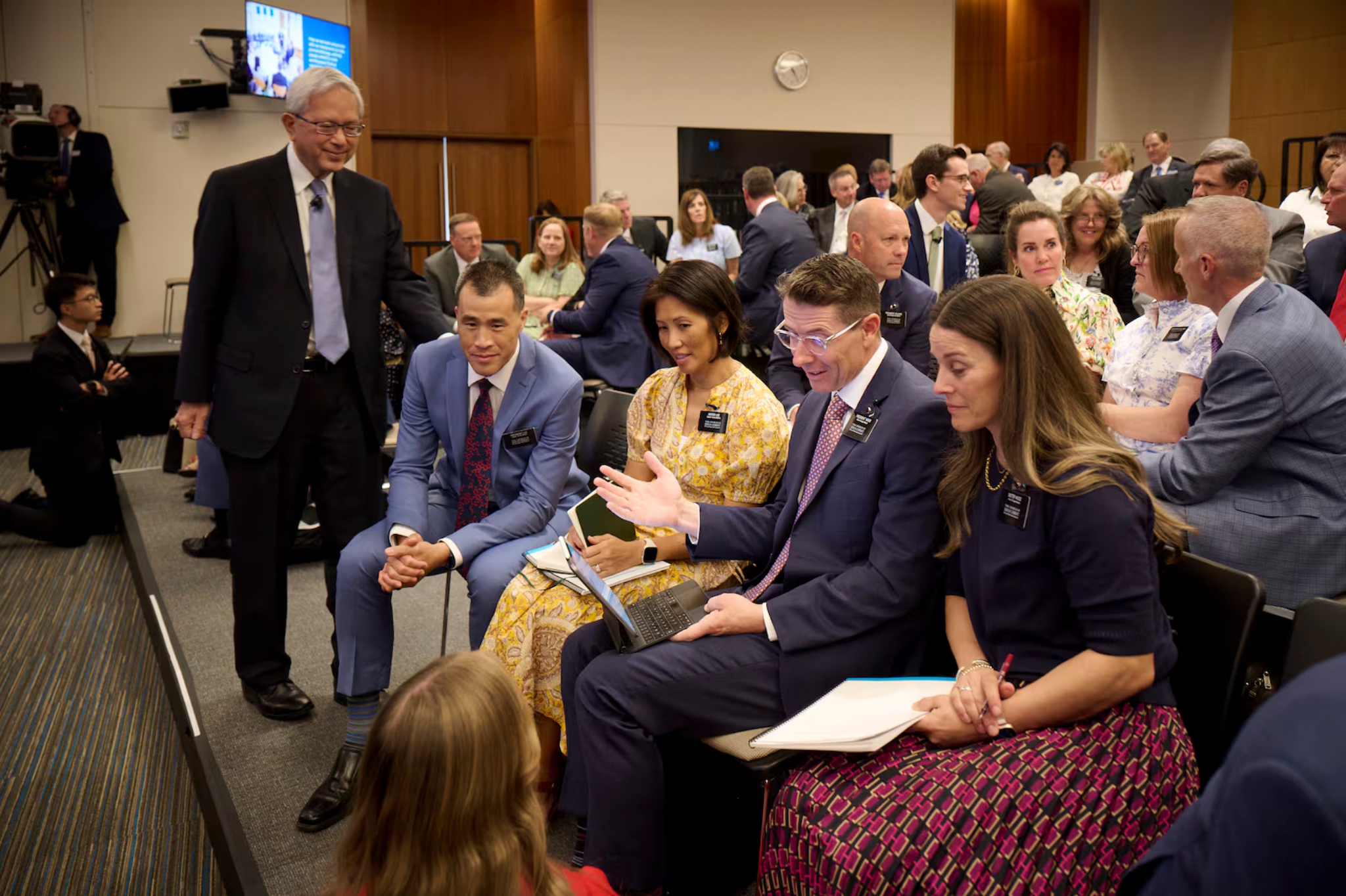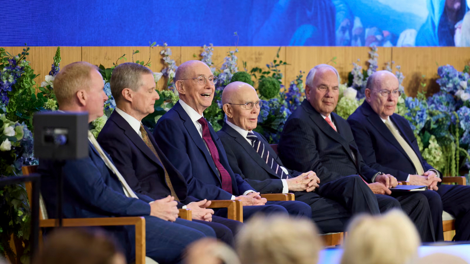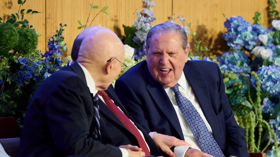 President Jeffrey R. Holland, Acting President of the Quorum of the Twelve Apostles, speaks with Elder Quentin L. Cook of the Quorum of the Twelve Apostles and President Dallin H. Oaks, First Counselor in the First Presidency, at the 2025 Seminar for New Mission Leaders in Provo, Utah, on Thursday, June 19, 2025.2025 by Intellectual Reserve, Inc. All rights reserved.