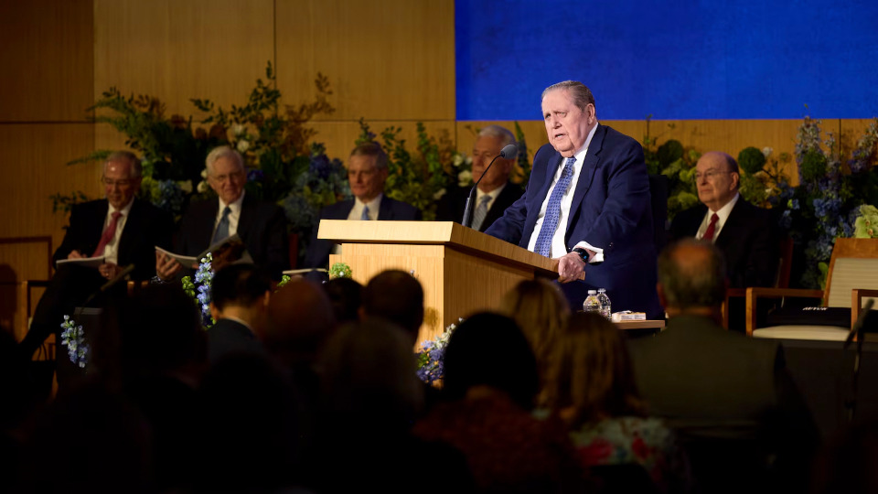President Jeffrey R. Holland, Acting President of the Quorum of the Twelve Apostles, speaks at the 2025 Seminar for New Mission Leaders in Provo, Utah, on Thursday, June 19, 2025.© 2025 by Intellectual Reserve, Inc. All rights reserved.