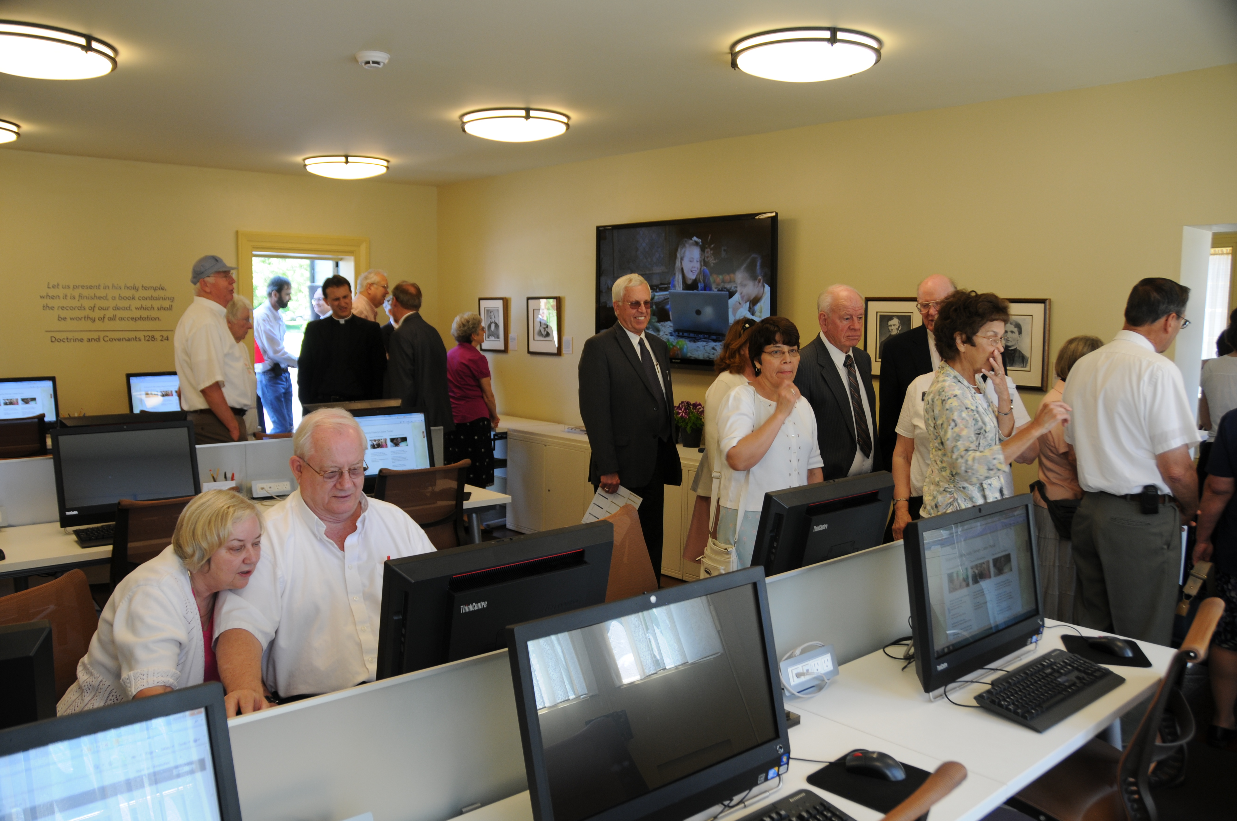 The center features 16 high speed computers that are dedicated for the use of those who wish to discover records of their ancestors. This service is free to the public and includes access to FamilySearch.org, Ancestry.com, Fold3.com and Findmypast.co.uk and other useful related genealogical search websites.
