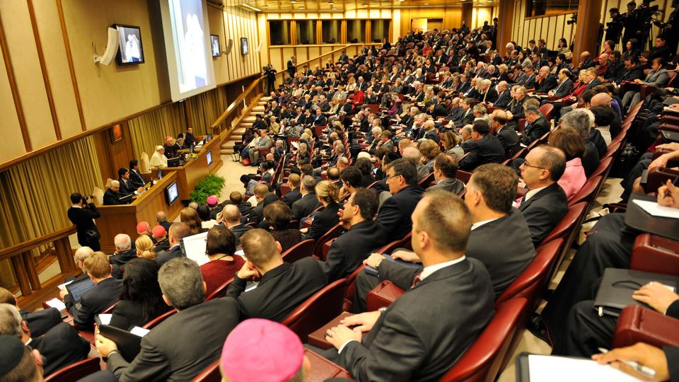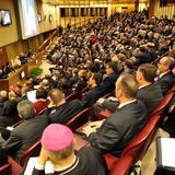- Audience listens in the Synod Hall at the Vatican