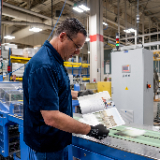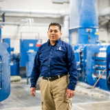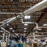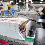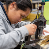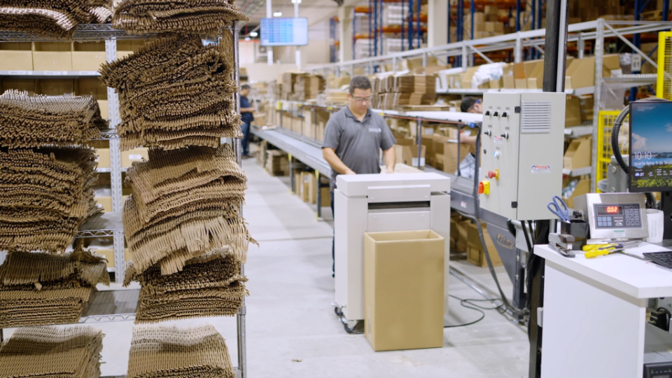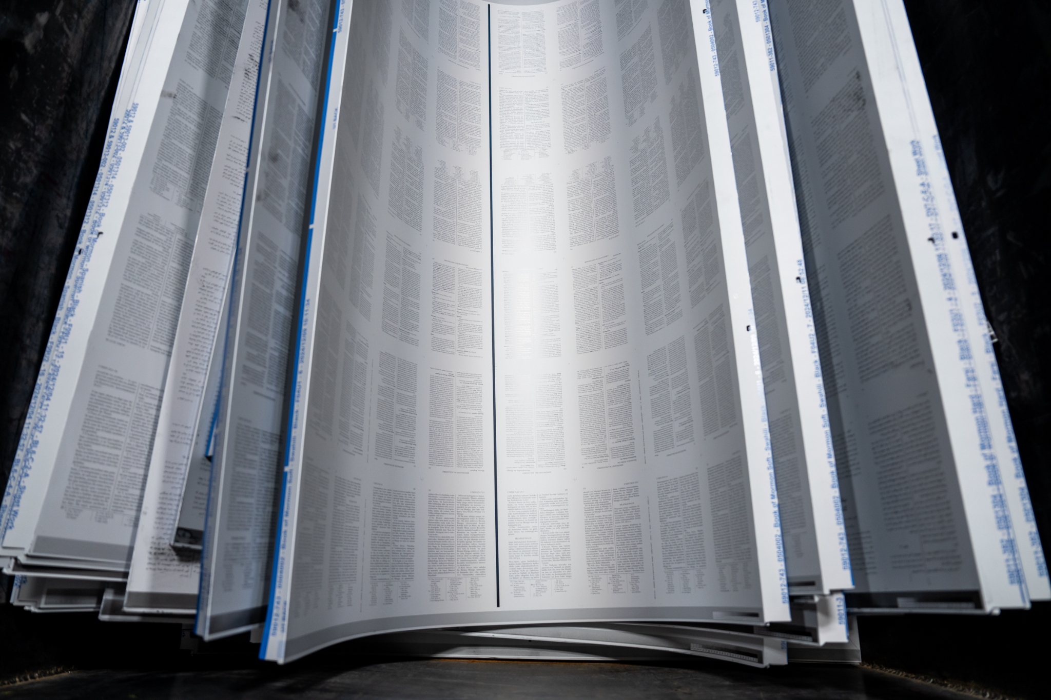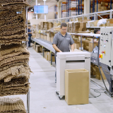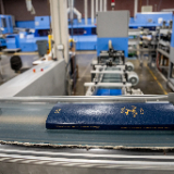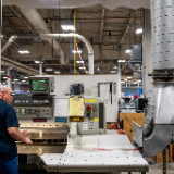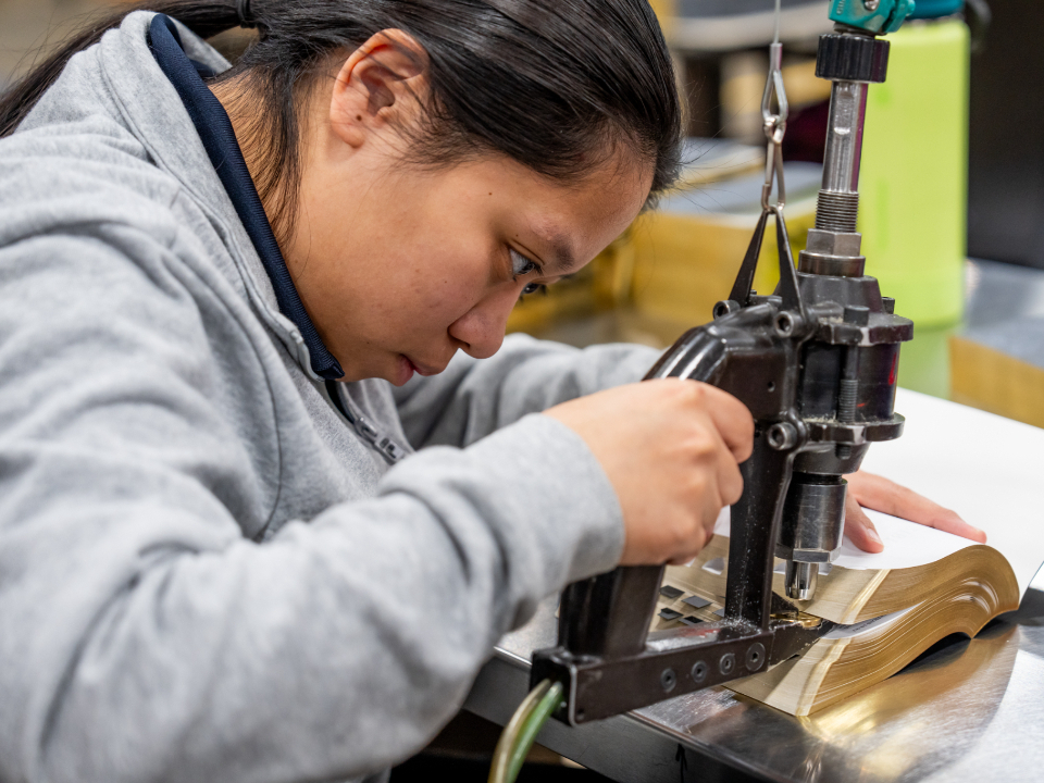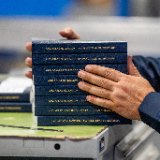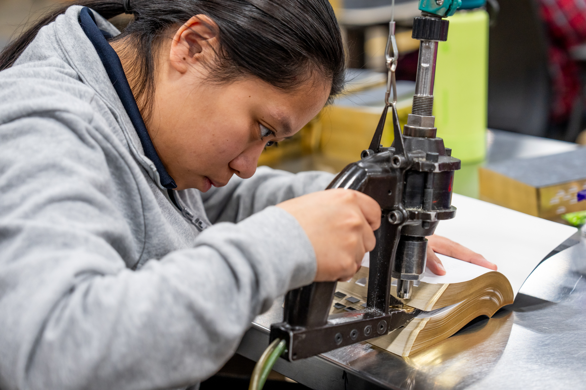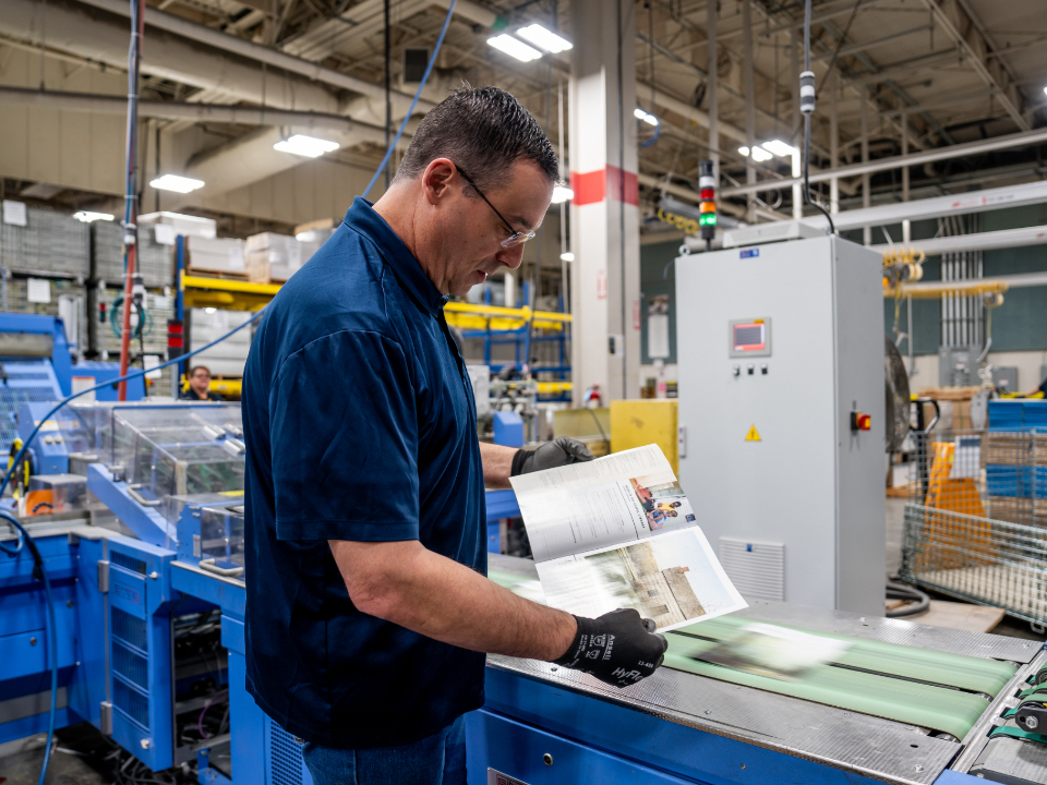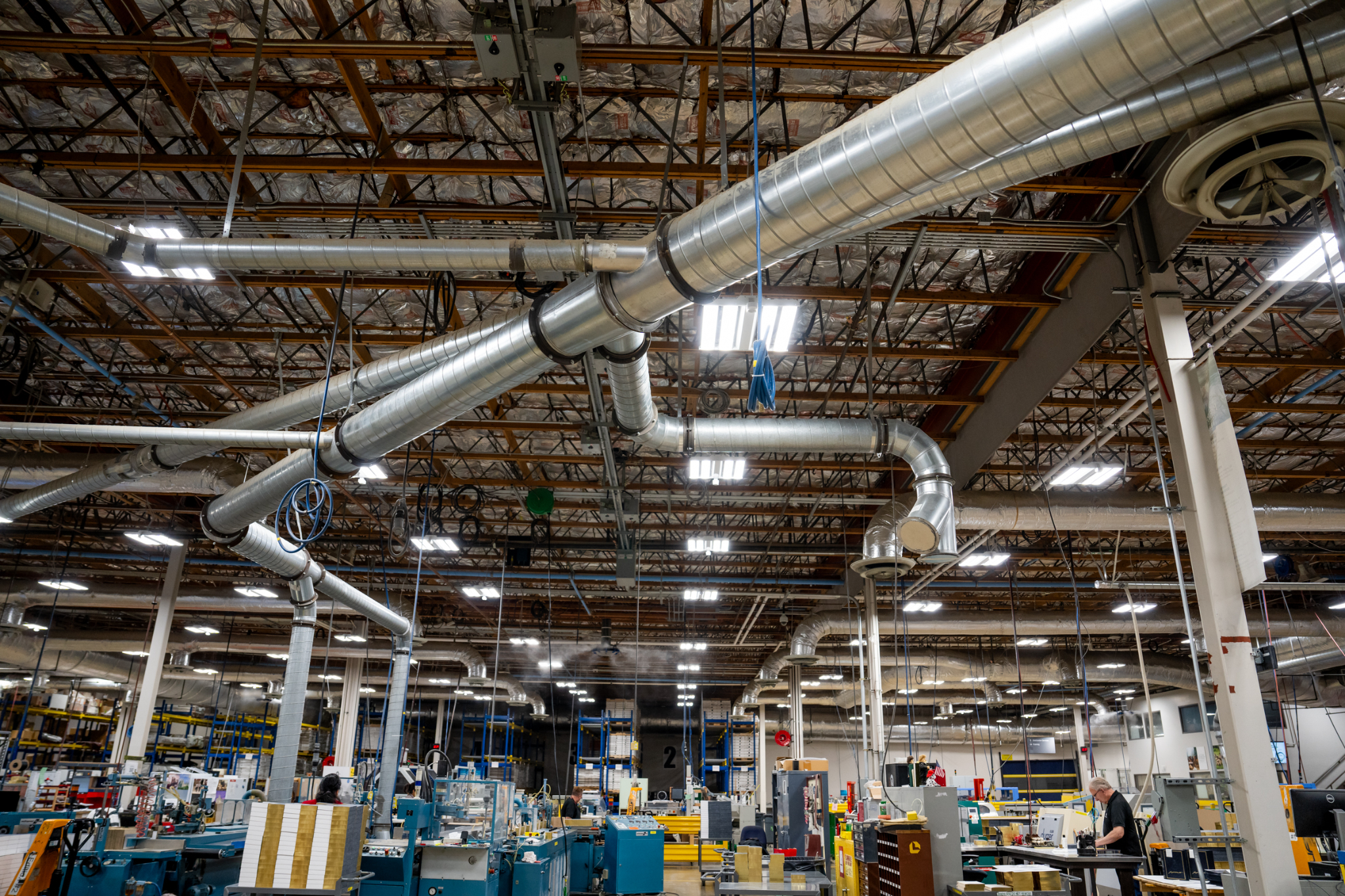 Stewardship begins at the Print Center using recycled materials, but it doesn’t stop there. Every scrap generated during the cutting, trimming and slicing processes is collected through a series of vacuums and ducts and sent to the baler room to be recycled. Even the dust generated by sanding is collected, compressed and repurposed. “And believe it or not, we make bales of just dust,” explained Felipe Rivera, Print Center maintenance supervisor.