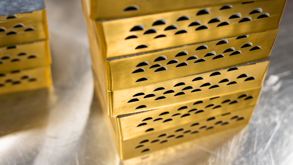 One hundred percent recycled, food-grade plastic is heated and cut to produce sacrament cups at the Print Center of The Church of Jesus Christ of Latter-day Saints in Salt Lake City, Utah, in December 2024. All excess material is sent to be recycled.2025 by Intellectual Reserve, Inc. All rights reserved.Managing Electronic Waste