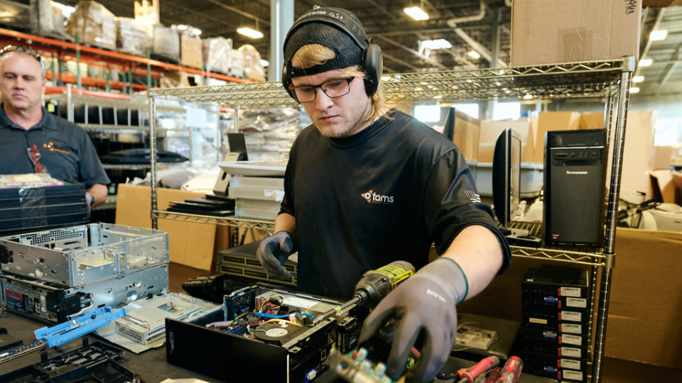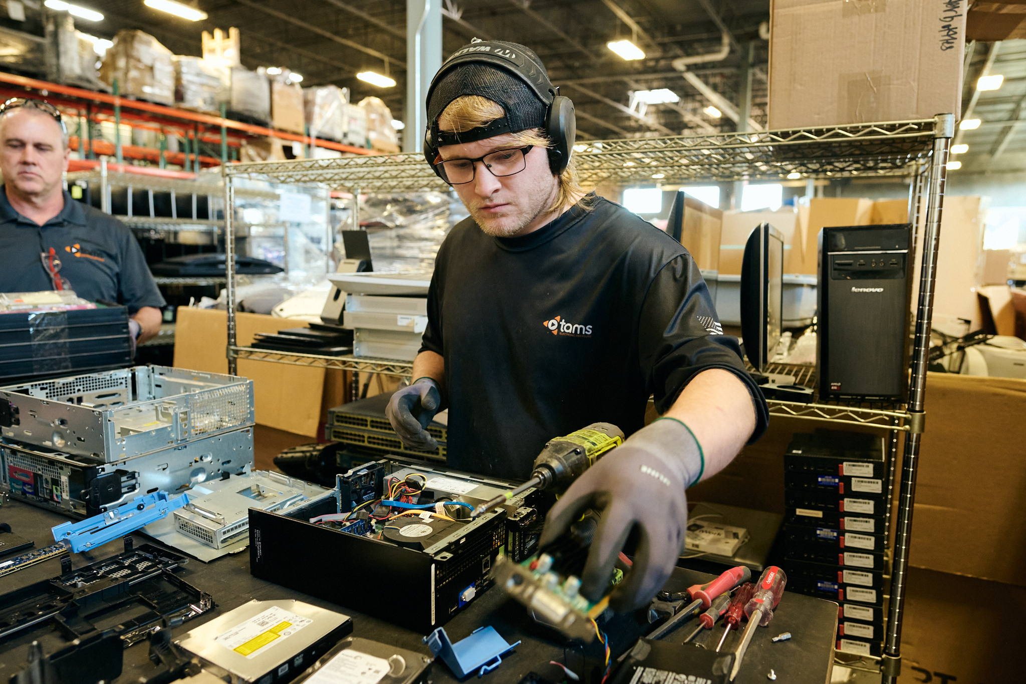 For electronics beyond reuse, the Church contracts with TAMS, a professional recycling firm, to ensure proper disposal. Items sent to TAMS are broken down into individual components and responsibly recycled. “Every single component that we handle here has a home downstream, and we avoid anything going into the landfill,” said Jason Dye, a partner at TAMS.