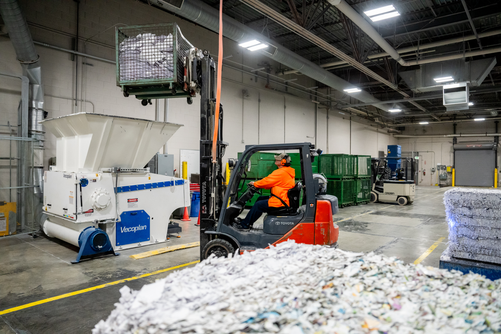 Recyclable materials are shredded and baled at the Print Center of The Church of Jesus Christ of Latter-day Saints in Salt Lake City, Utah, in December 2024.2025 by Intellectual Reserve, Inc. All rights reserved.Sacrament Cups