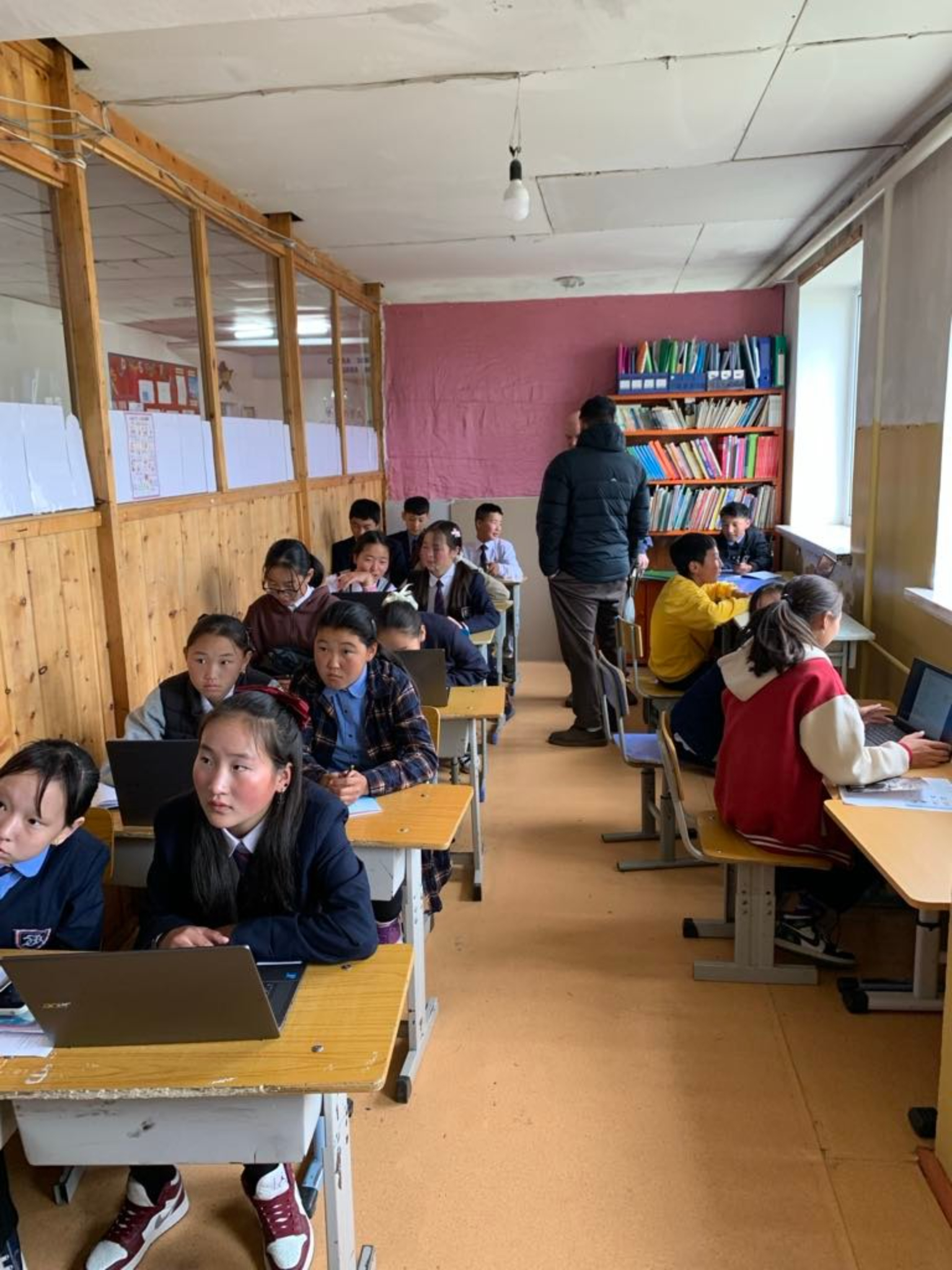 Children in Mongolia use donated computers at school in 2024.Education
