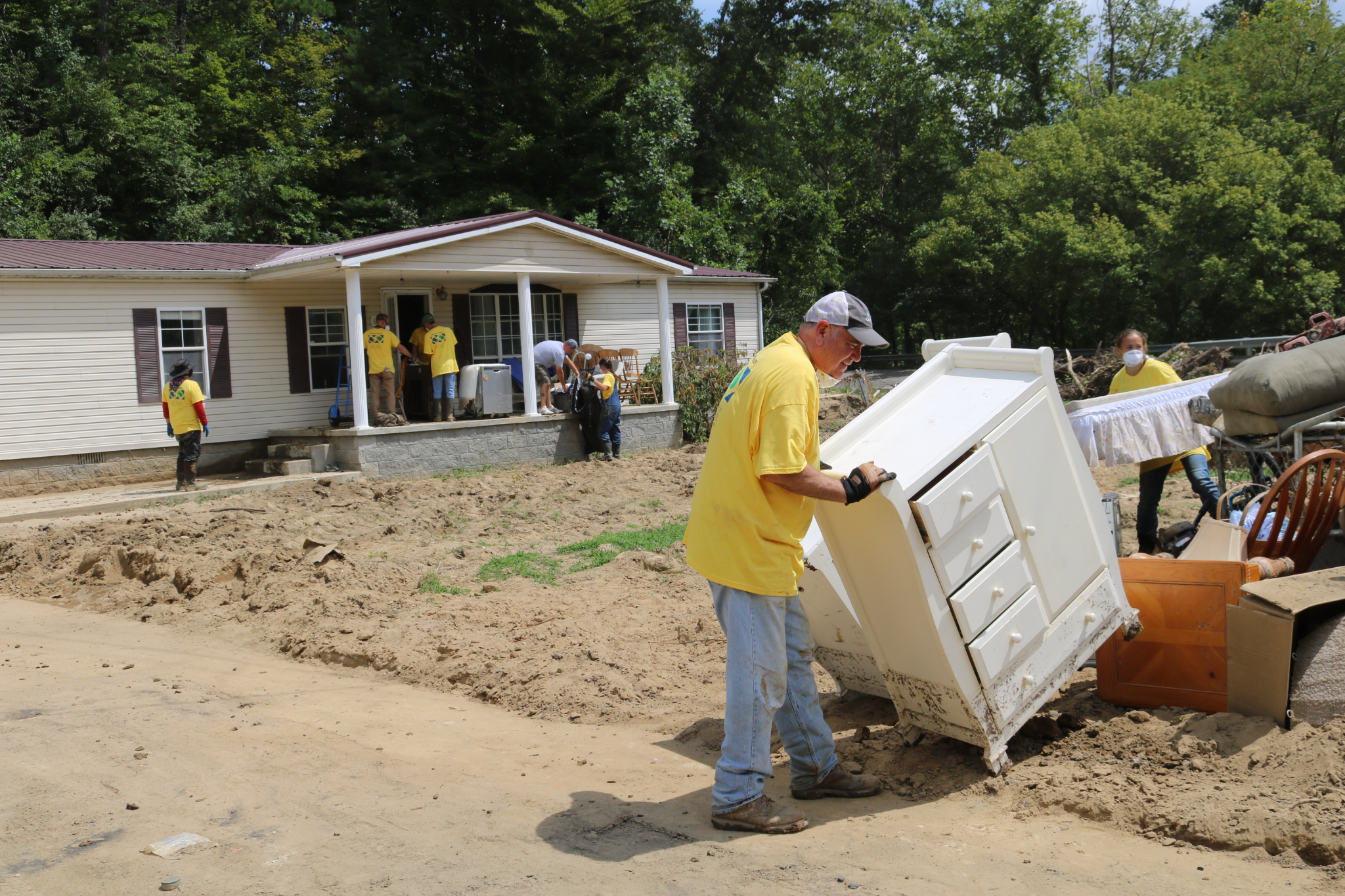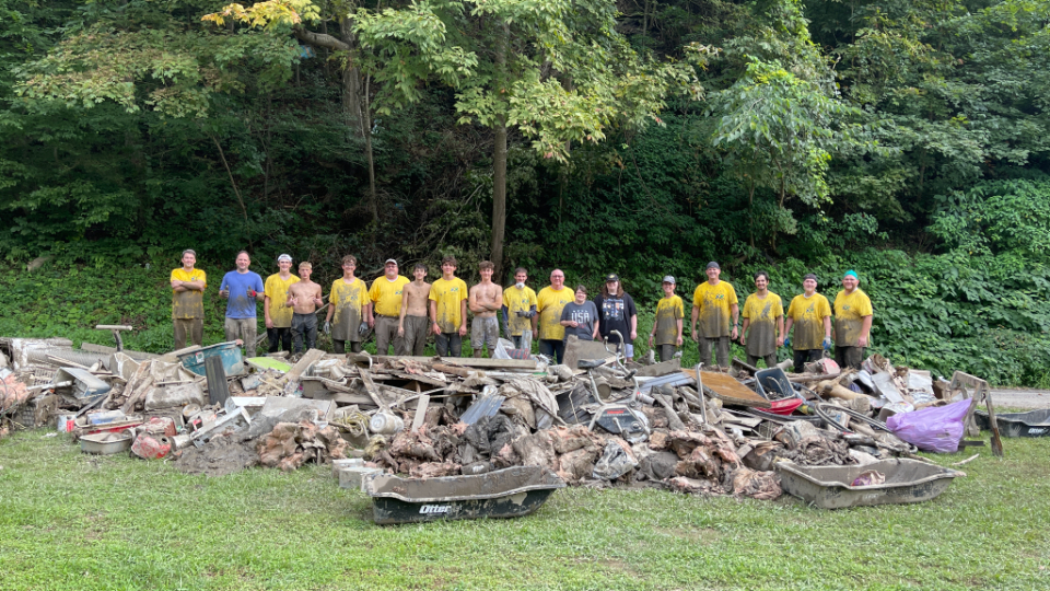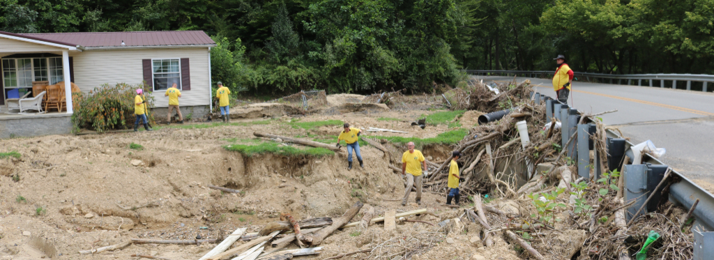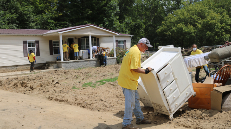Helping Hands volunteers spent the last two weekends cleaning up after July’s devastating flooding in eastern Kentucky, clearing debris, shoveling mud, mucking out homes, moving furniture, preparing meals and filling many other assigned tasks.