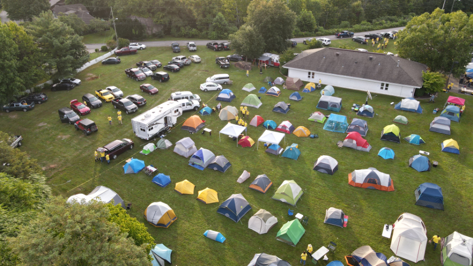 The Church members and volunteers brought their own tools and camped in tents in the area, said Columbus Ohio North Stake President Gary C. Mangelson.