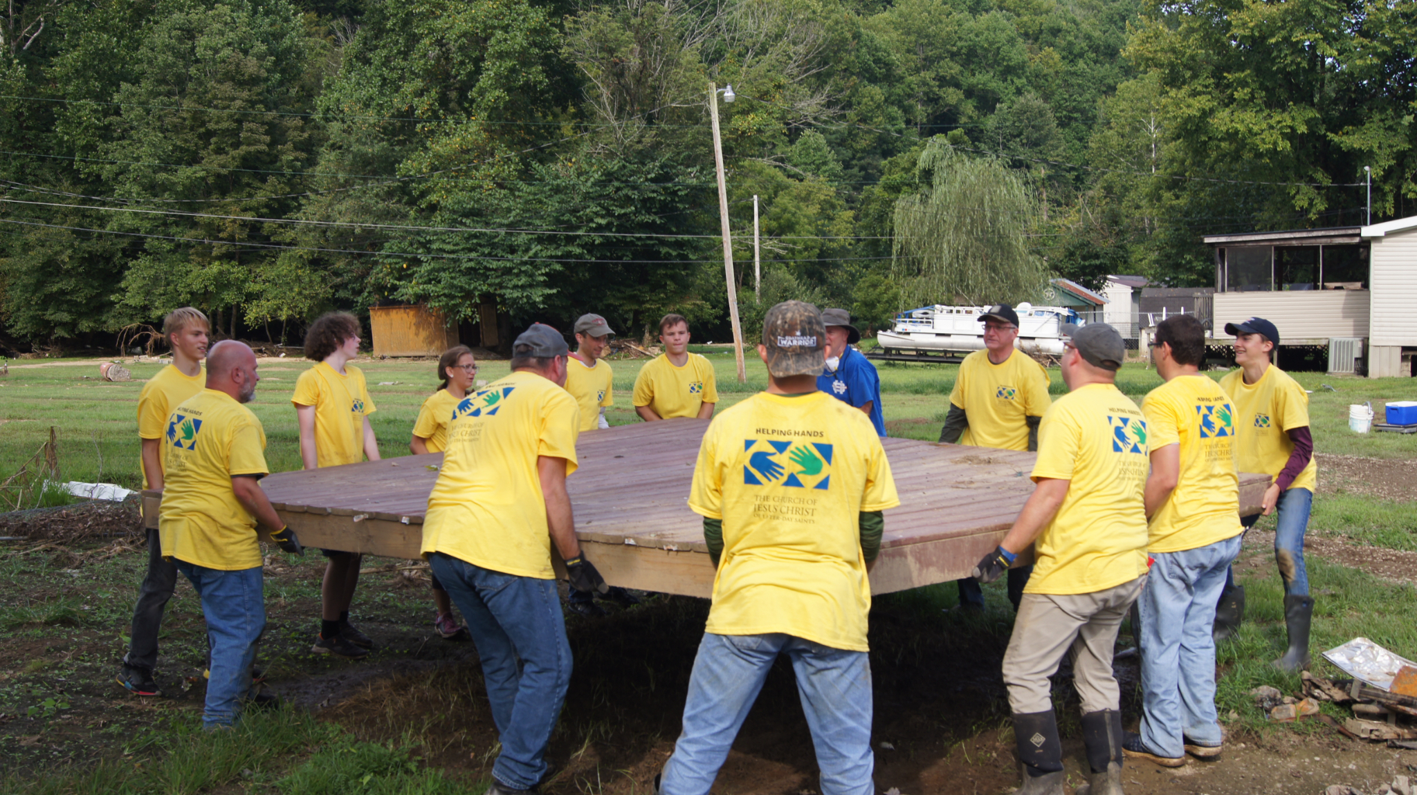 More than 1,000 people from 30 stakes (congregations) of The Church of Jesus Christ of Latter-day Saints showed up to help each weekend, coming from central and western Kentucky, Indiana, Ohio, Tennessee, Virginia and West Virginia.