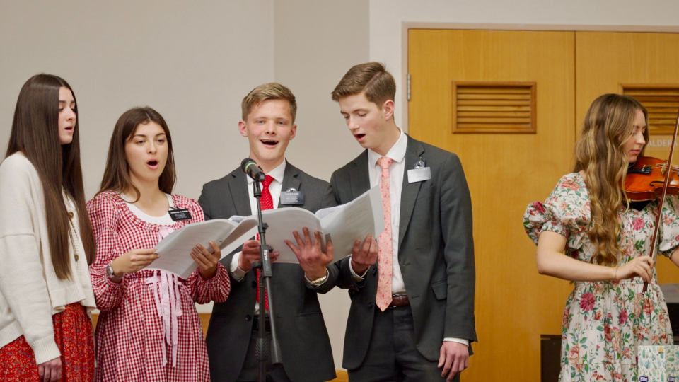 Music plays a central role in hymnbook singer Naomi Perkin’s life, and she is grateful for the guidance it can bring. “We listen to music to do basically anything,” said Perkins, 19. “It keeps us going. Having spiritual music to guide you is so helpful. It helps me — and I know it helps others — feel God’s love throughout our lives.”