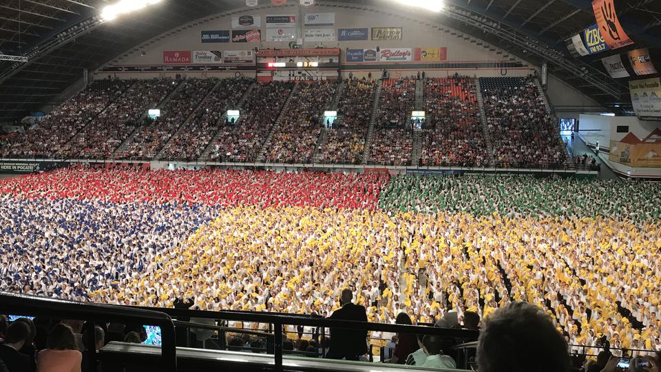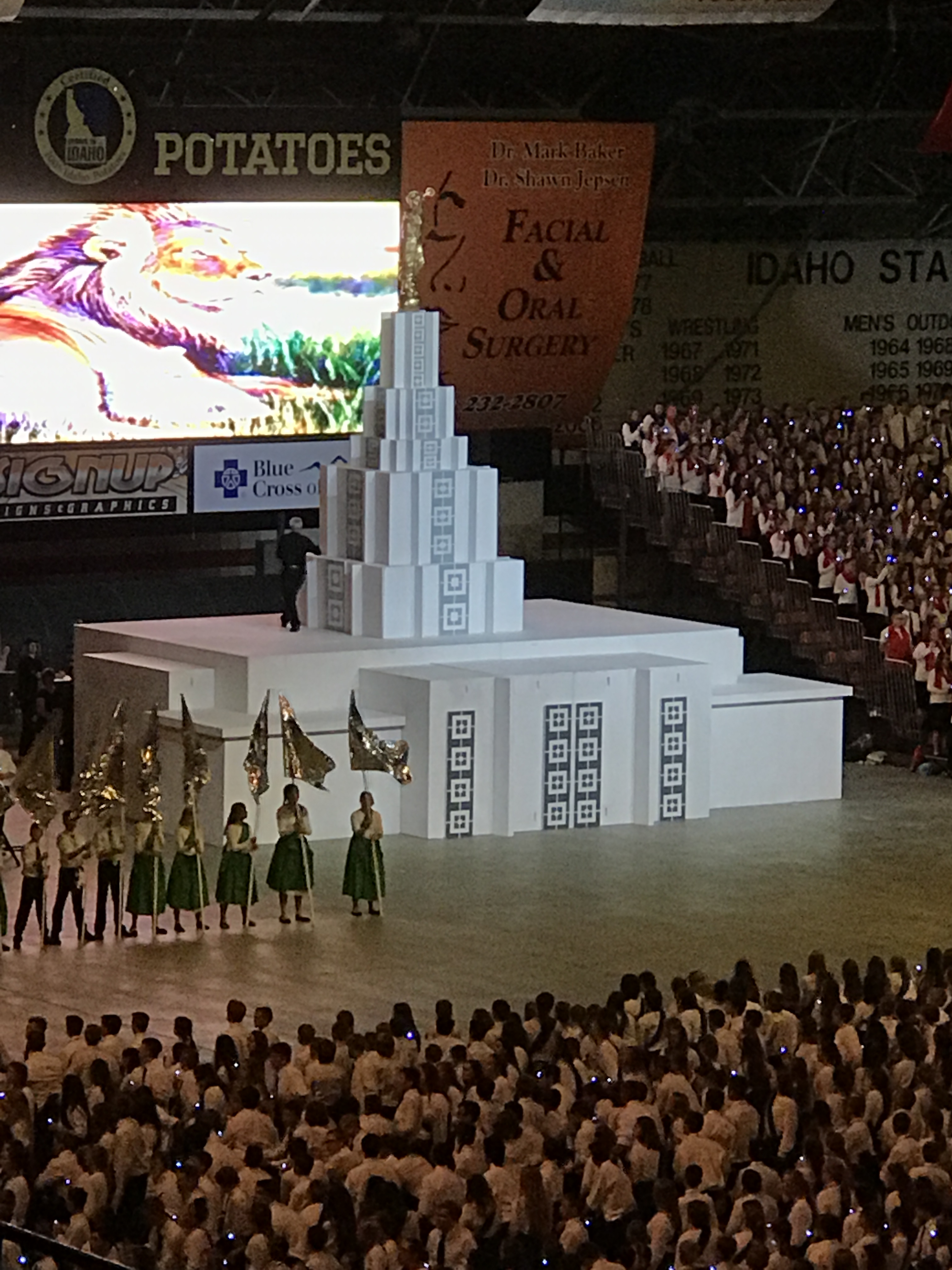 Approximately 12,000 youth from Blackfoot, Idaho Falls, Lost River, McCammon, Pocatello, Rigby and Salmon participated in a cultural celebration June 3, 2017, with the theme “Temple by the River — Reflections.” The script included a narrative of the cultural history of the Snake River Valley intertwined with drama, music and dance.