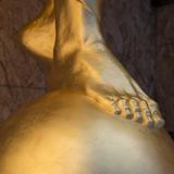 From the bottom of Moroni’s feet to the top of his head, he is seven feet tall. The statue is coated with gold leaf, supported by a steel structure and is 106 feet from the ground.