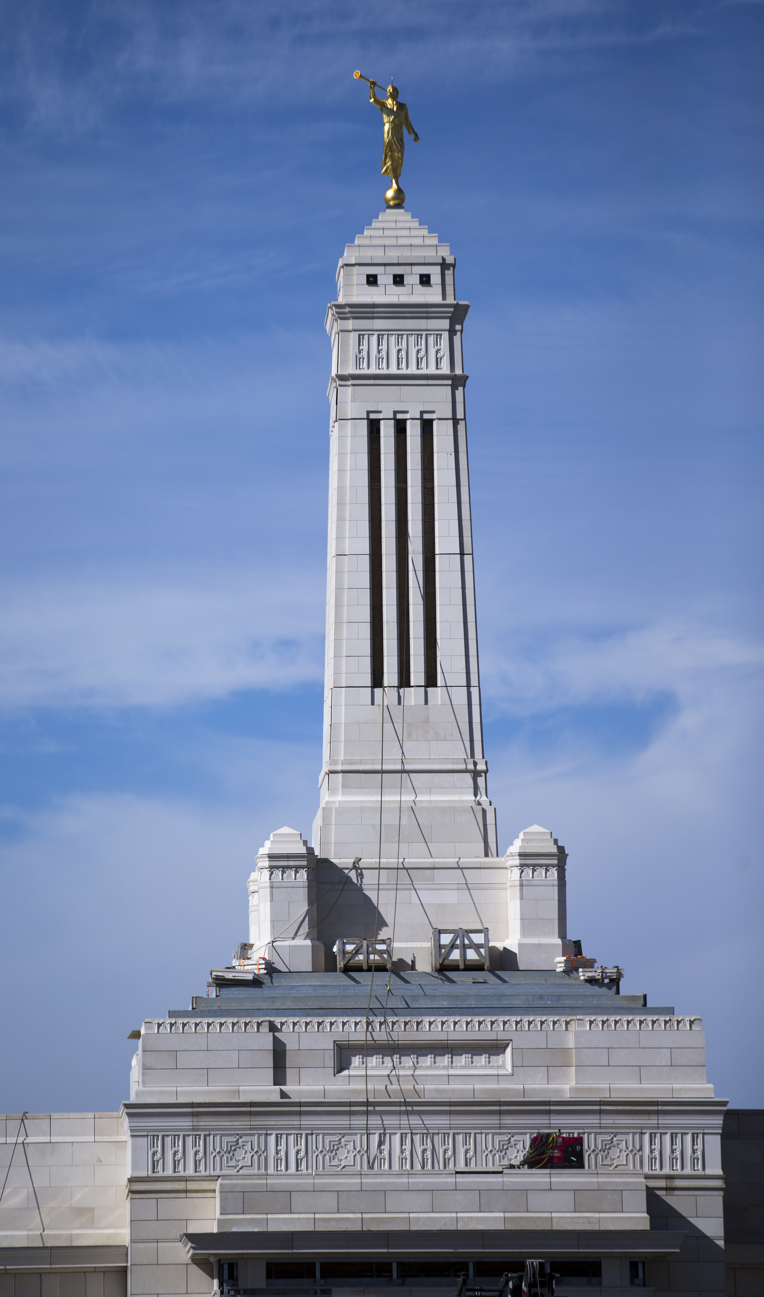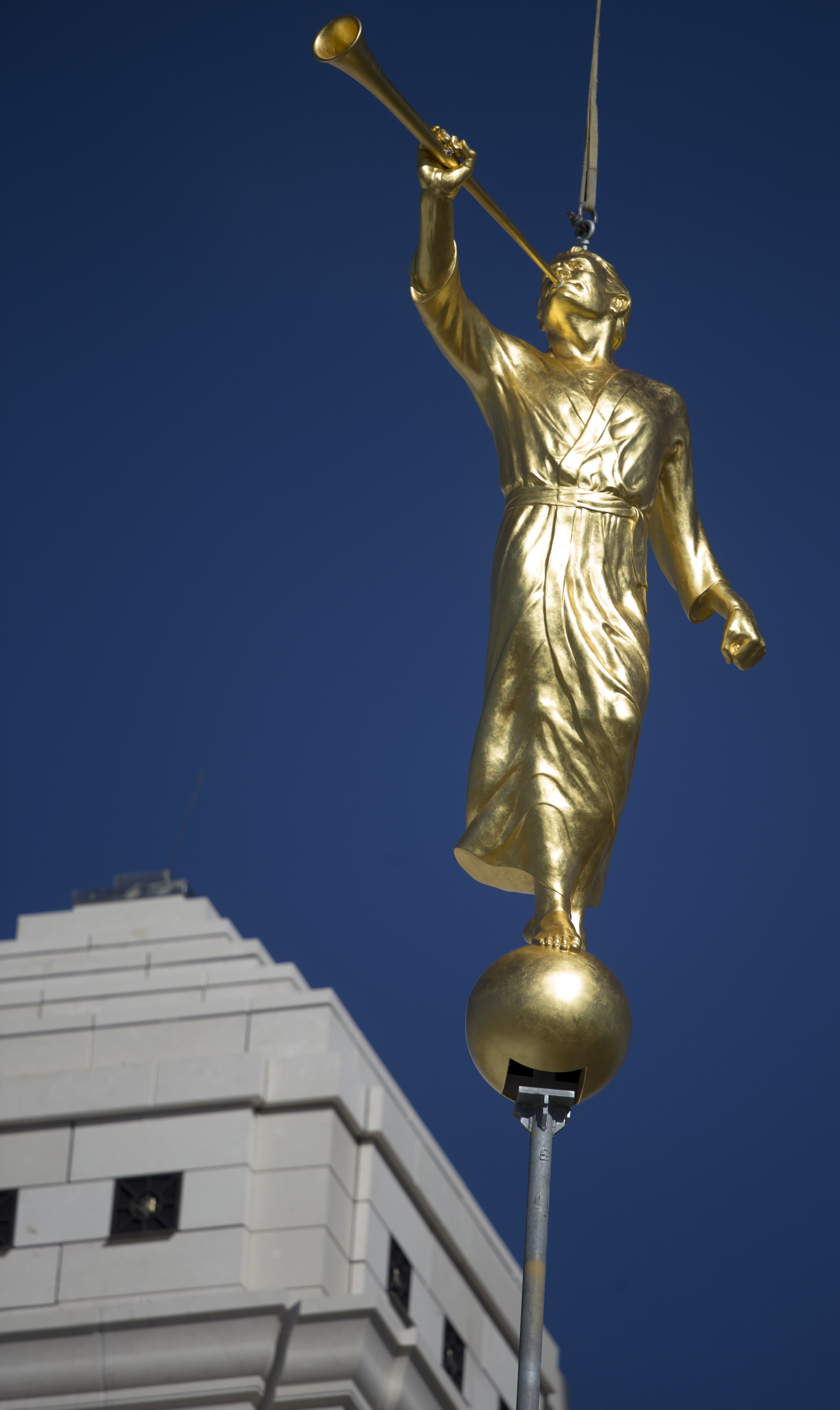 Placement of the angel Moroni is one of the early visible highlights of the construction period of a temple. There is no formal ceremony attached to the statue’s placement.