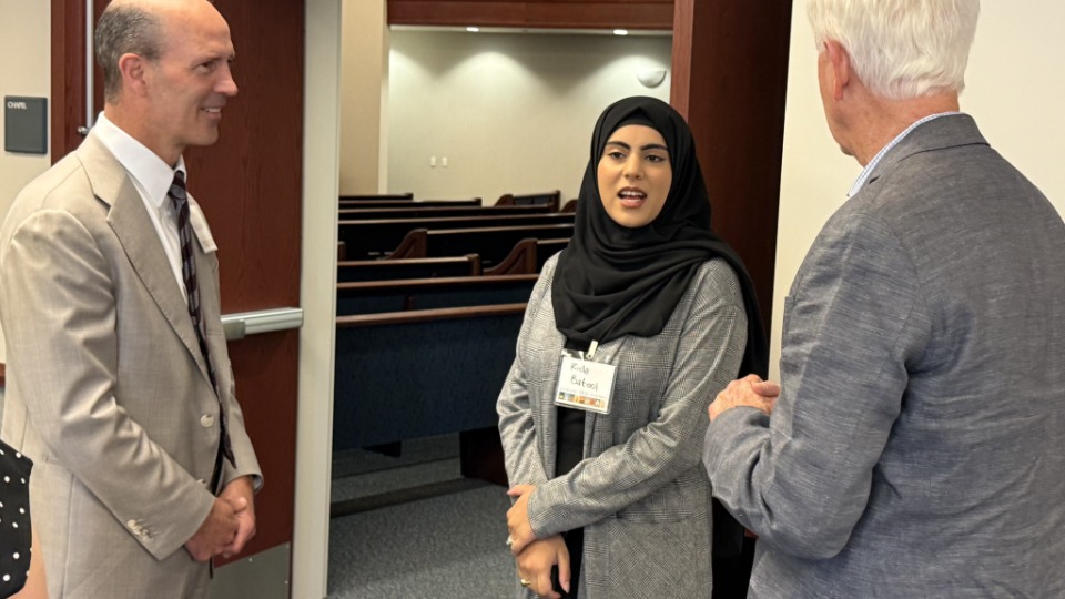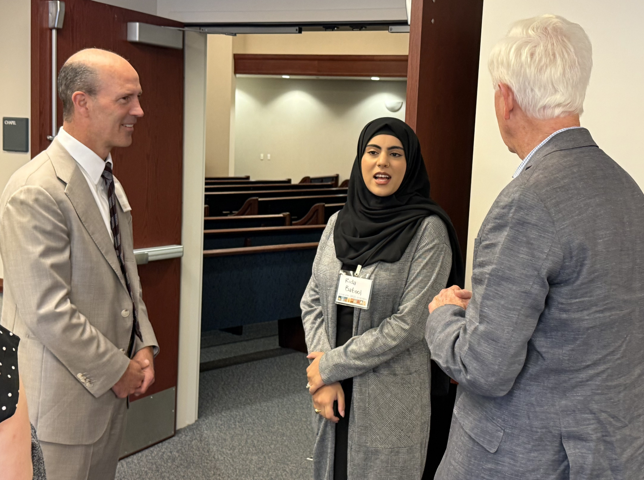 Elder Steven D. Shumway of the Seventy (left) speaks with Bruce Duffield (right), who oversees the Church’s interfaith work in Chicago, and Rida Batool (middle) of the Council of Islamic Organizations of Greater Chicago, at an interfaith gathering hosted by The Church of Jesus Christ of Latter-day Saints in Chicago on Wednesday, September 10, 2025.© 2025 by Intellectual Reserve, Inc. All rights reserved.Imam Rizwan Ali told the audience how his Muslim community’s proposal to build a sacred space faced opposition. Muslims had been an integral part of the larger suburban community for three decades but had never designed and built a mosque from the ground up.