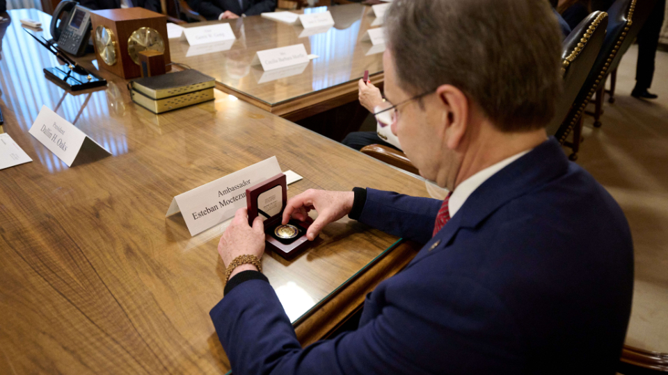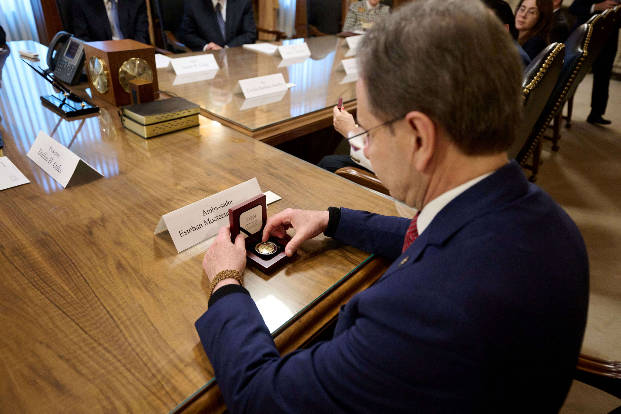 During his visit to Utah on October 12 and 13, His Excellency Esteban Moctezuma Barragán, Mexican Ambassador to the U.S., toured local Church sites in Salt Lake City, met with members of the First Presidency, and spoke at BYU as part of the BYU Ambassador Lecture Series.