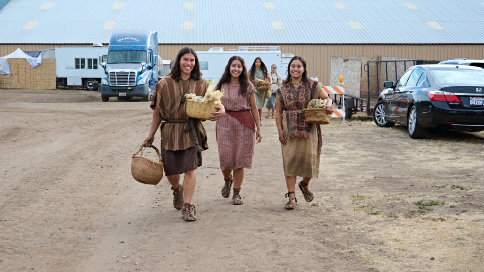 Other scenes from 3 Nephi in the Book of Mormon are also being filmed. Experiences with the Savior, like those of Jesus Christ’s followers in Jerusalem, include his blessing and ministering to children (3 Nephi 17:11), healing the sick and afflicted (3 Nephi 17:7), and calling 12 apostles to teach His gospel (3 Nephi 19:4).