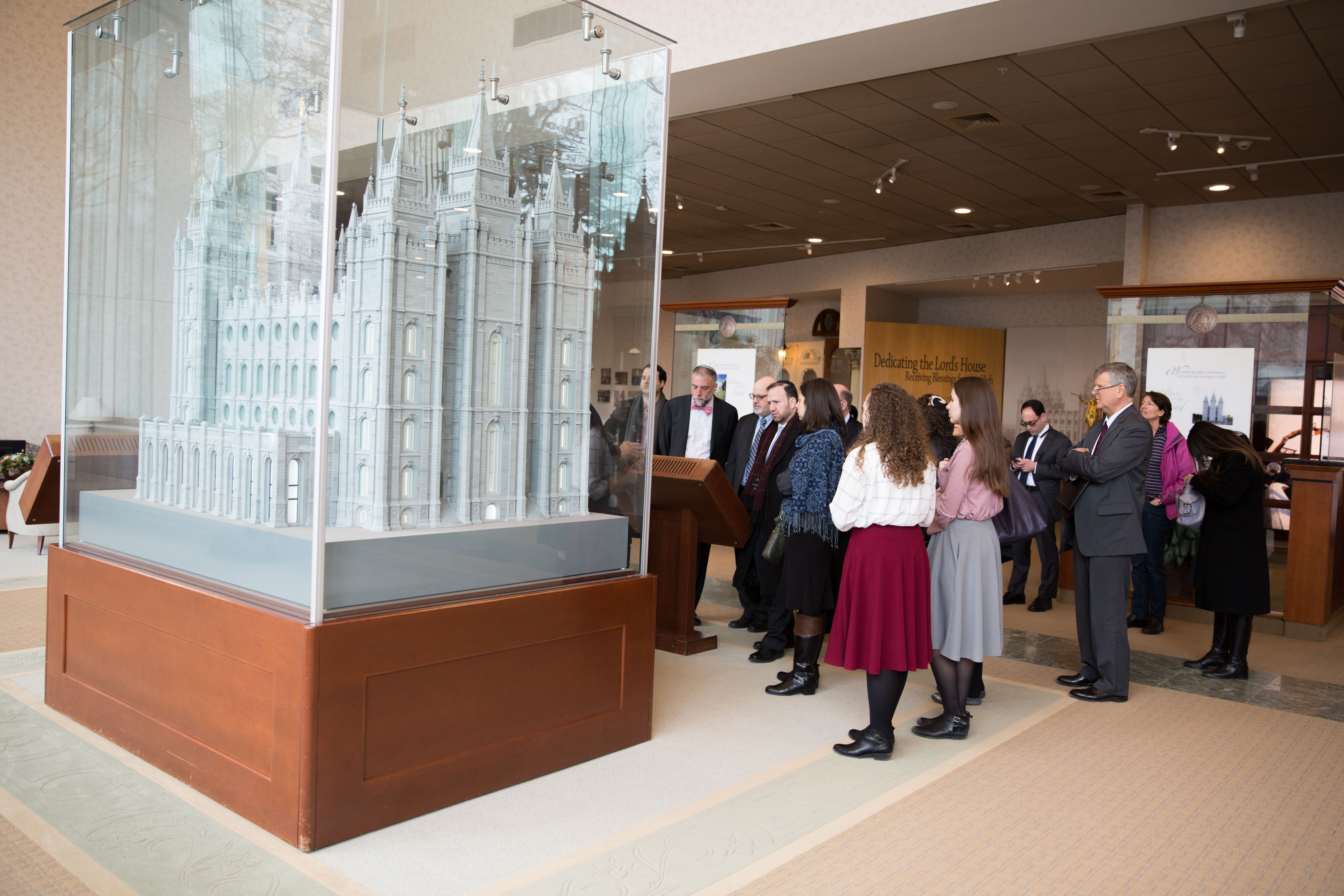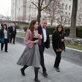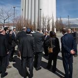 The delegation toured the Jordan River Utah Temple (located 15 miles south of downtown Salt Lake City) on a rainy Wednesday afternoon. Former New York Attorney General Robert Abrams, who toured several Latter-day Saint temples in years past, said he was once again struck by the sacred structure’s Jewish connection.