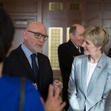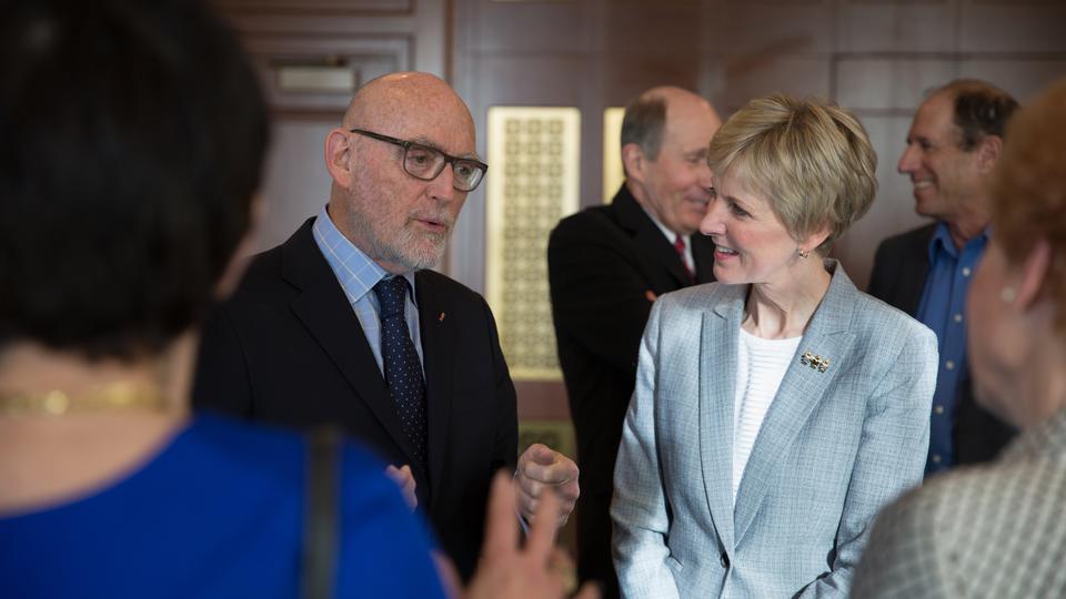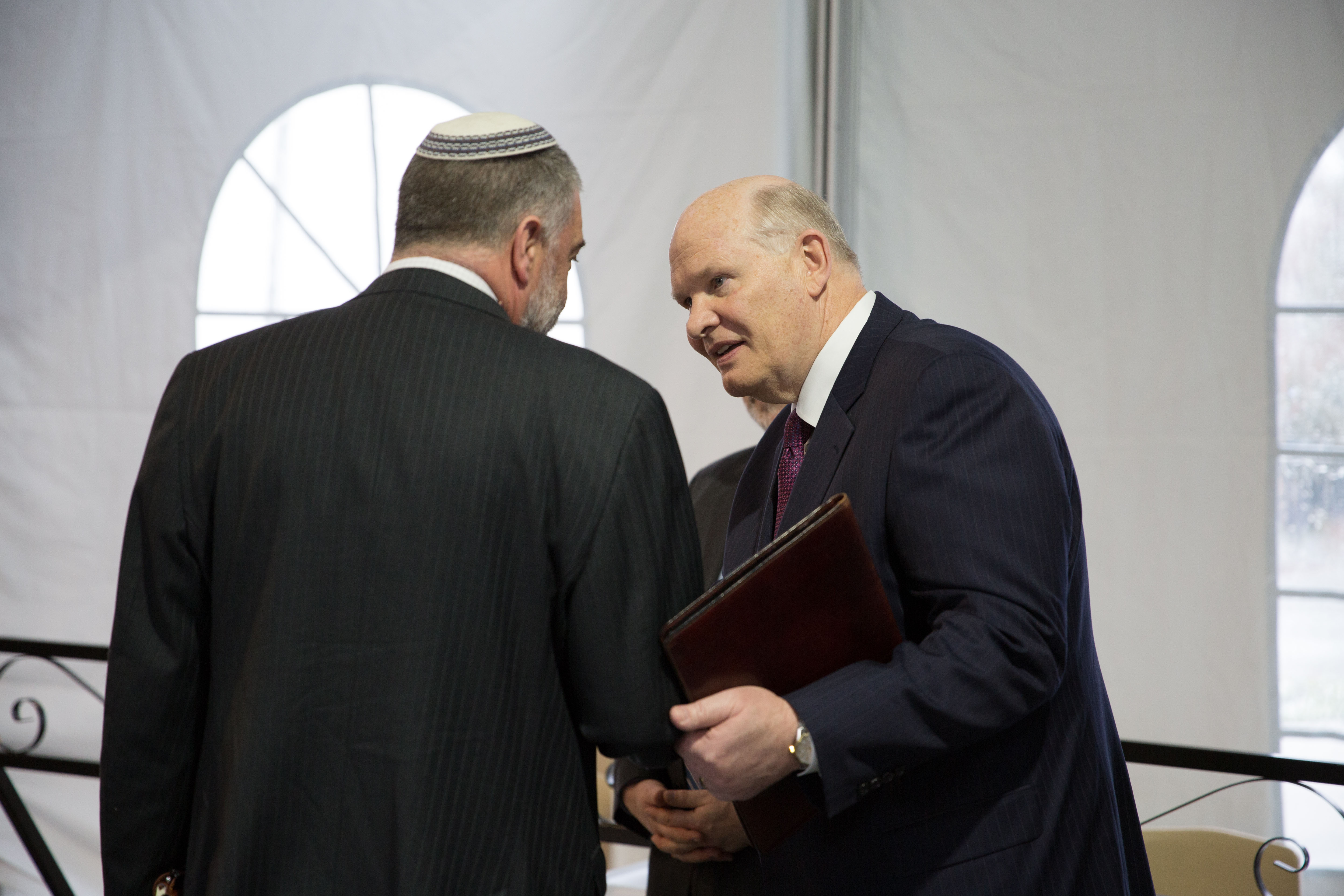 Elder Christofferson and Sister Jean B. Bingham, the Church’s Relief Society general president, joined the Jewish delegation at a dinner Tuesday night. Afterward, Sister Bingham spoke of growing up in New Jersey attending seders and Shabbat services with Jewish friends, and later as a Latter-day Saint seminary instructor in Chicago for six years. She spent two of those years teaching the Old Testament, where she learned about Jewish holidays such as Purim, Rosh Hashana and Yom Kippur.