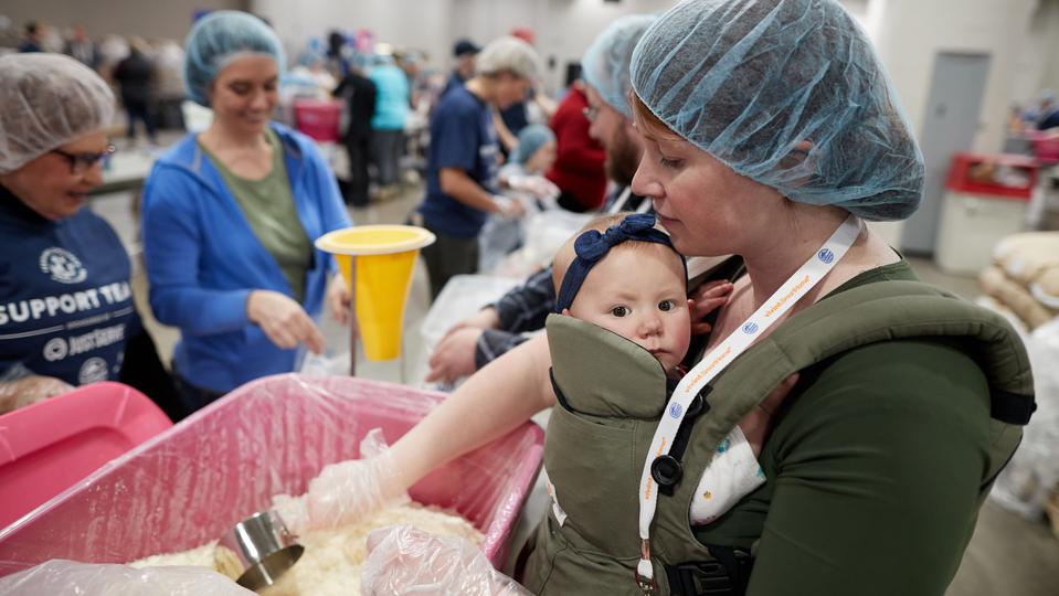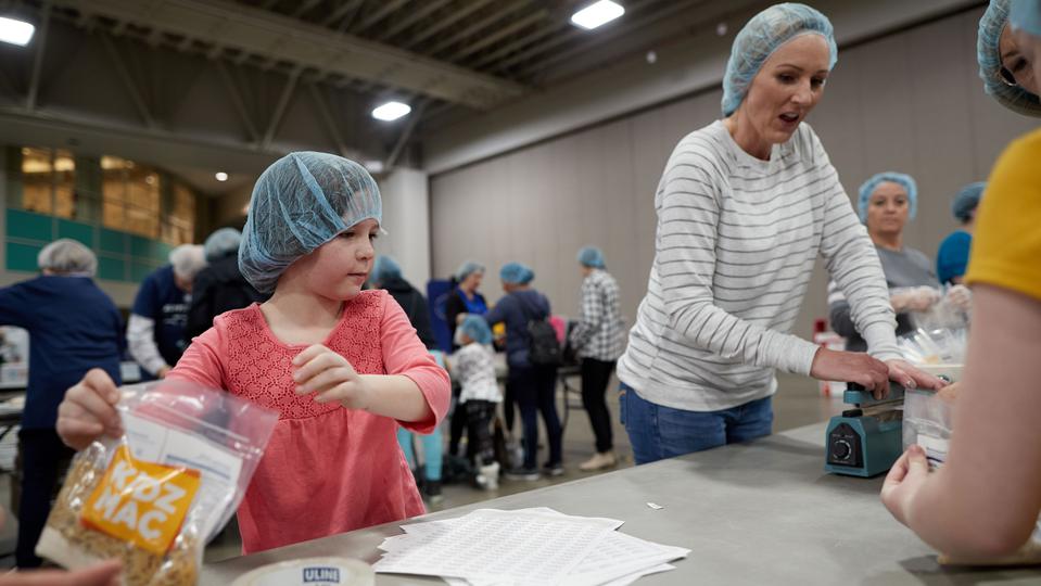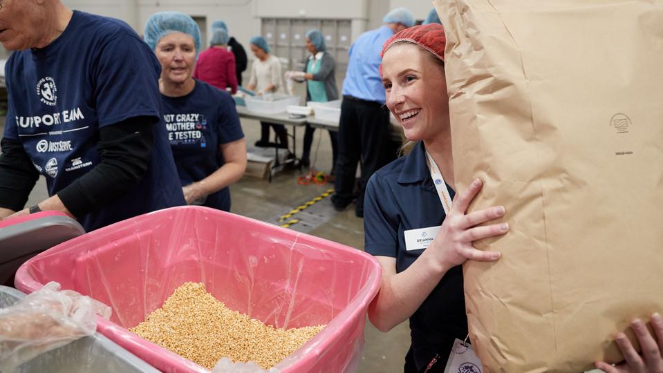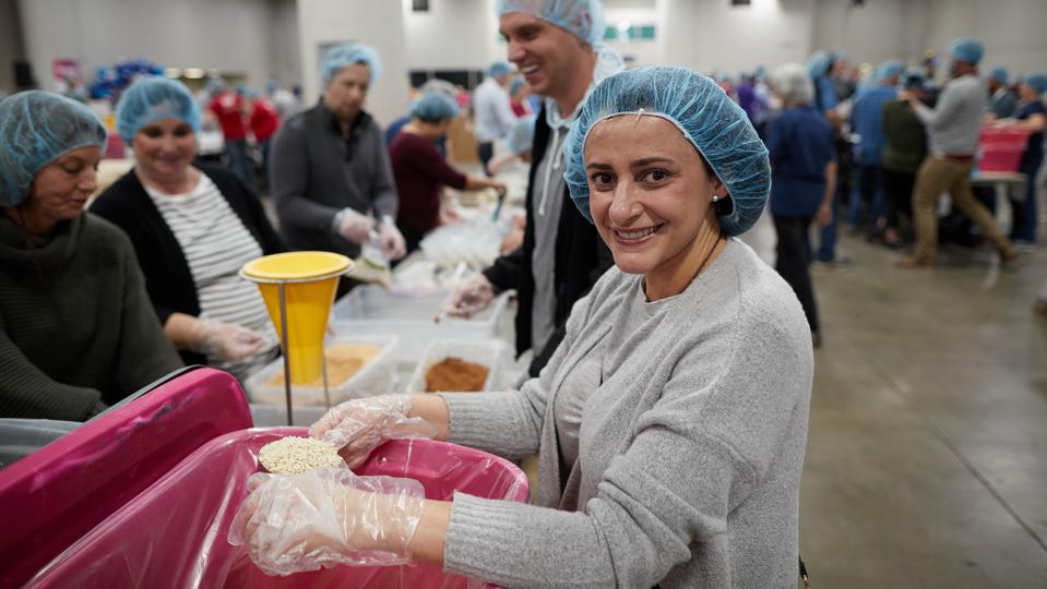 “It's a fun, high-energy, hands-on volunteer experience where volunteers in a very short period of time make a huge impact in packaging meals like oatmeal and mac and cheese and mashed potatoes, jambalaya, hamburger — all kinds of food that's going to go in a grocery bag for children and families in need,” said Green.