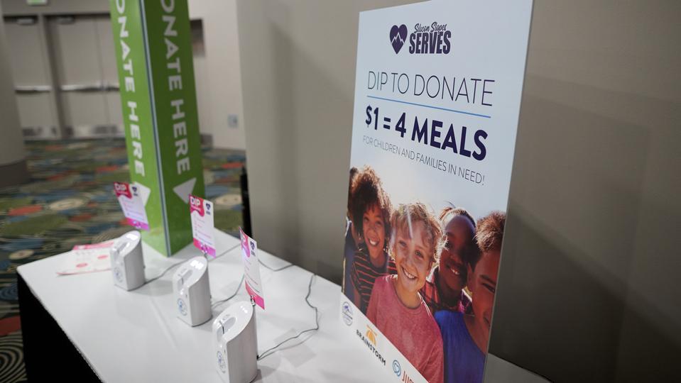 Conference attendees also donated by dipping their credit cards into machines in the convention center.