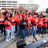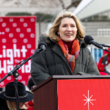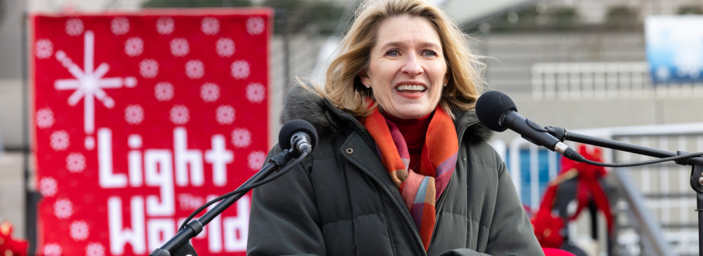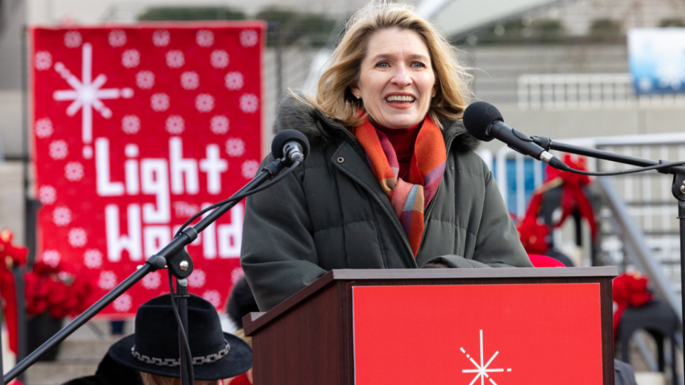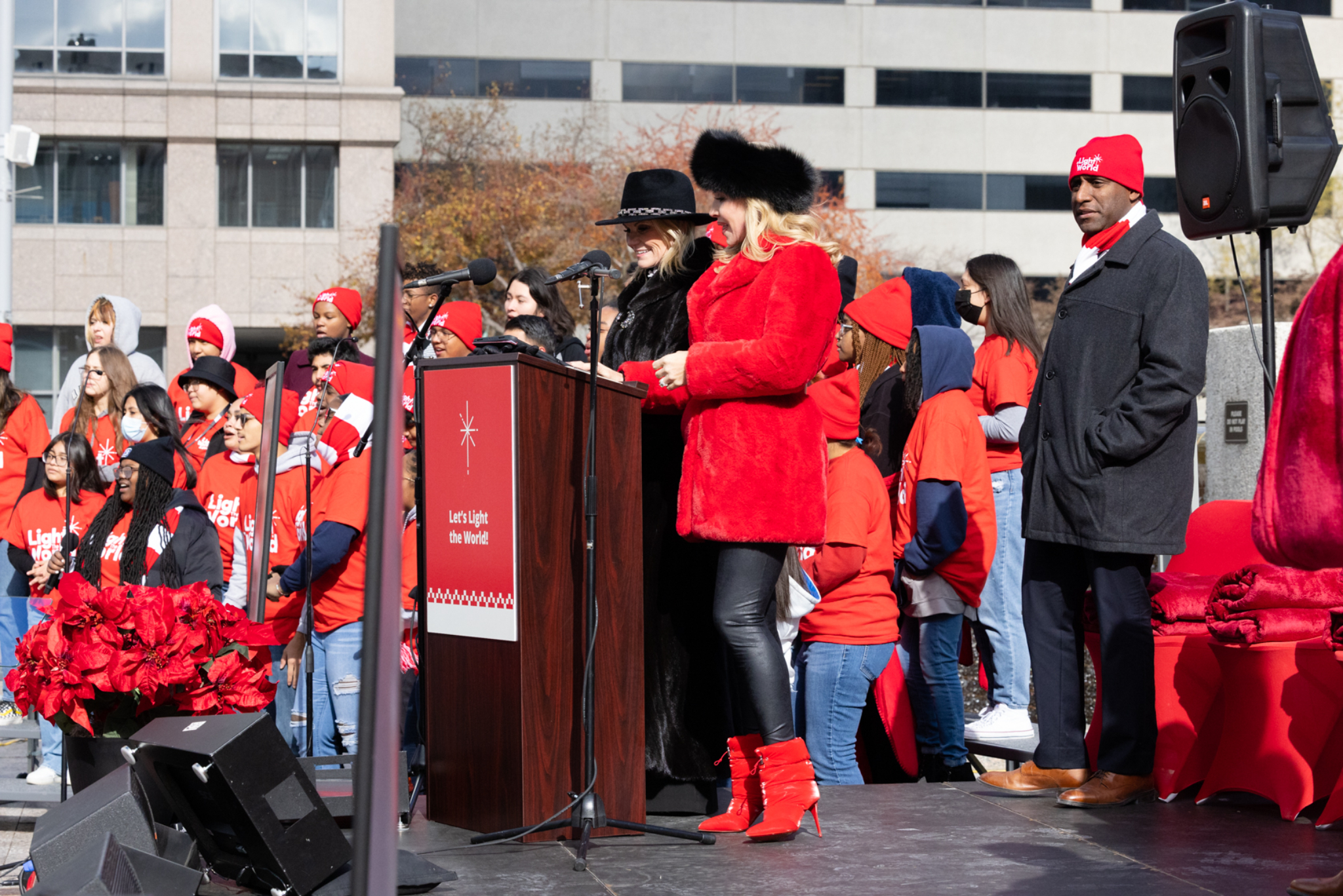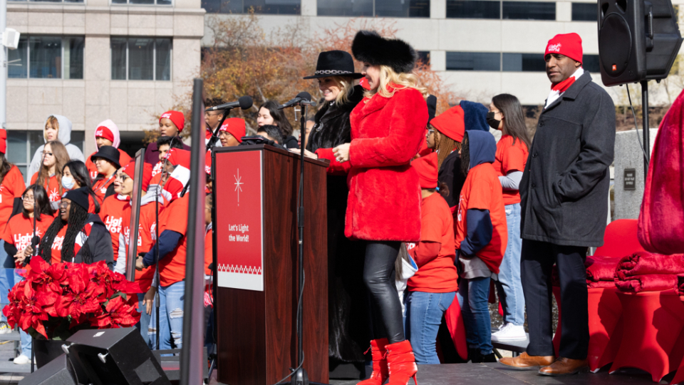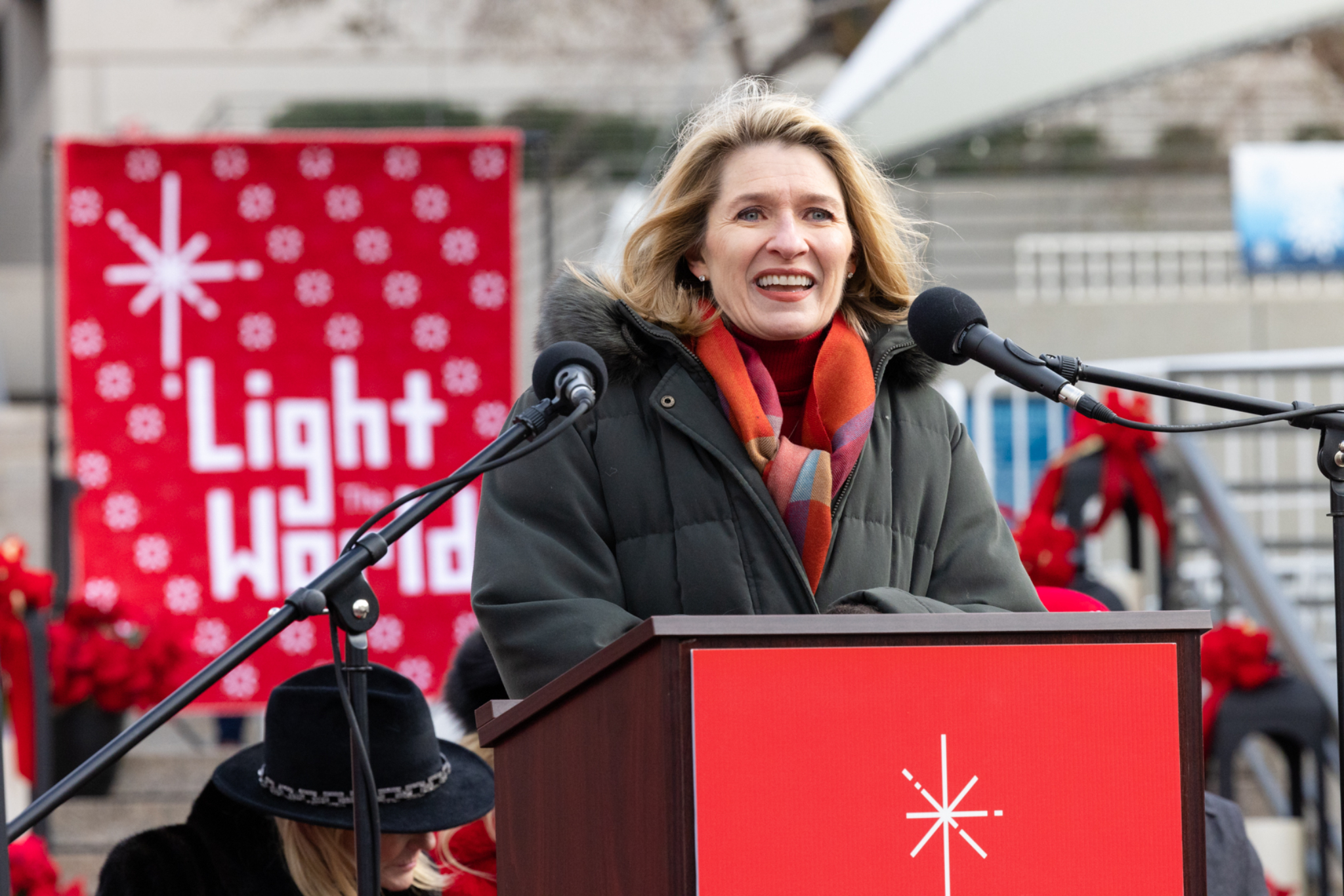 Camille N. Johnson, the Church’s Relief Society General President, participated in Wednesday’s unveiling at Crown Center in downtown Kansas City.