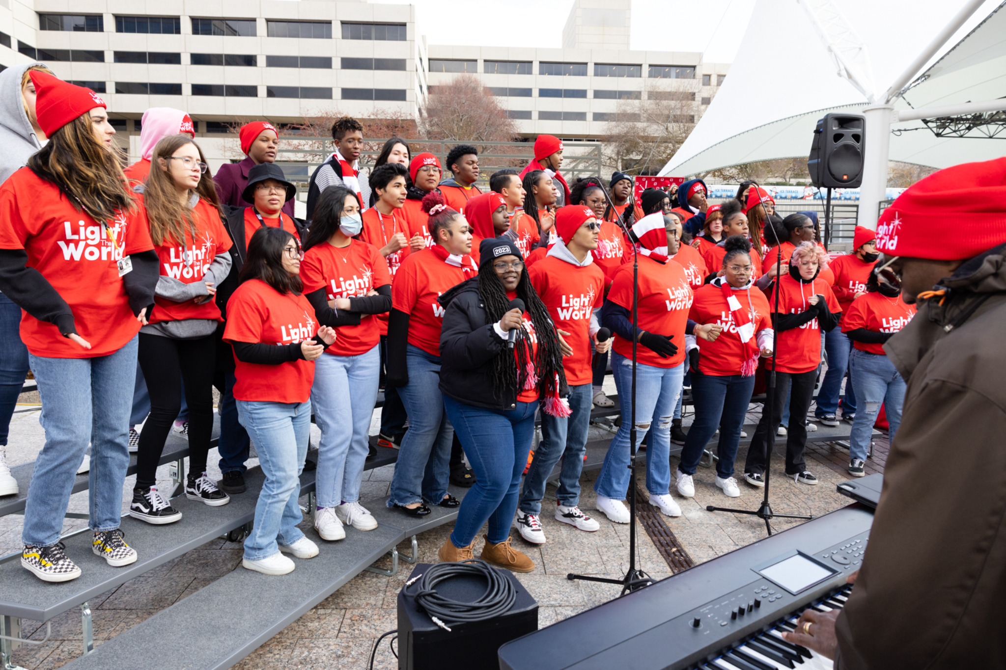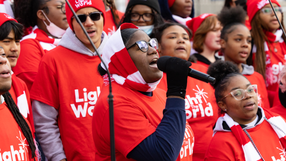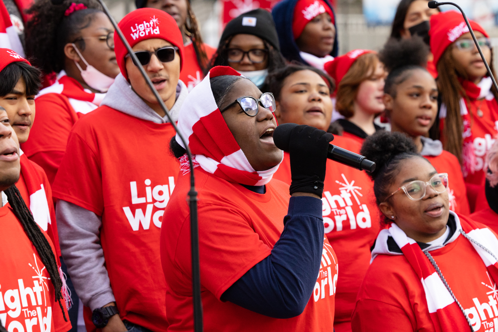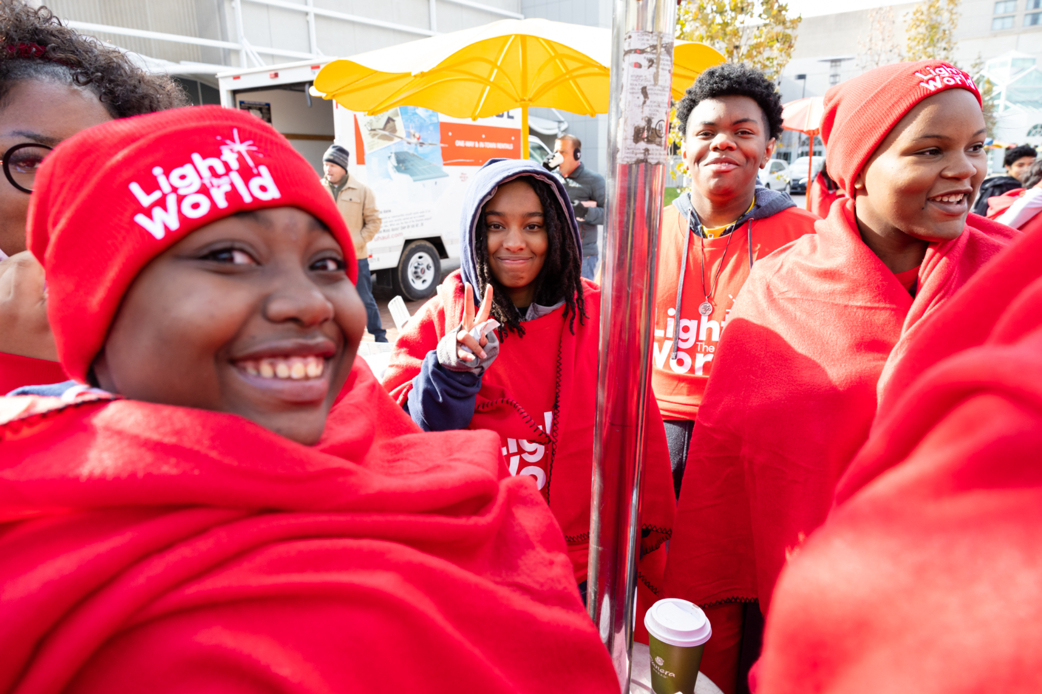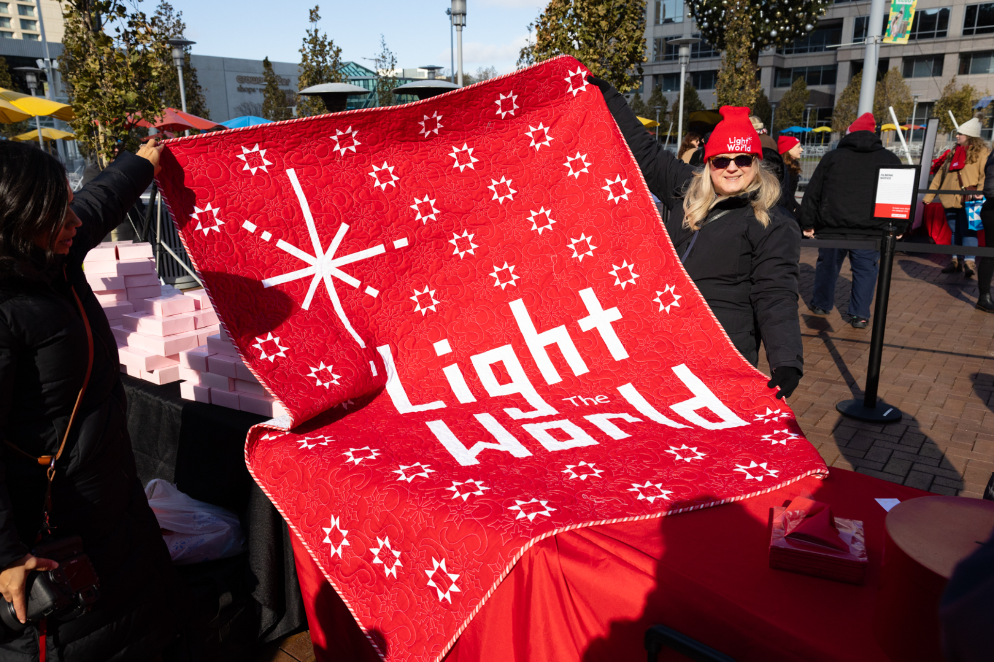 The Missouri Star Quilt Company made this special quilt to raise money for Wednesday’s kickoff event for the Light the World Giving Machines at Crown Center in downtown Kansas City on Wednesday, November 16, 2022.2022 by Intellectual Reserve, Inc. All rights reserved.This is the second consecutive Christmas season that Giving Machines have been placed in Kansas City. People can use the machines to donate to any of the following eight charities: